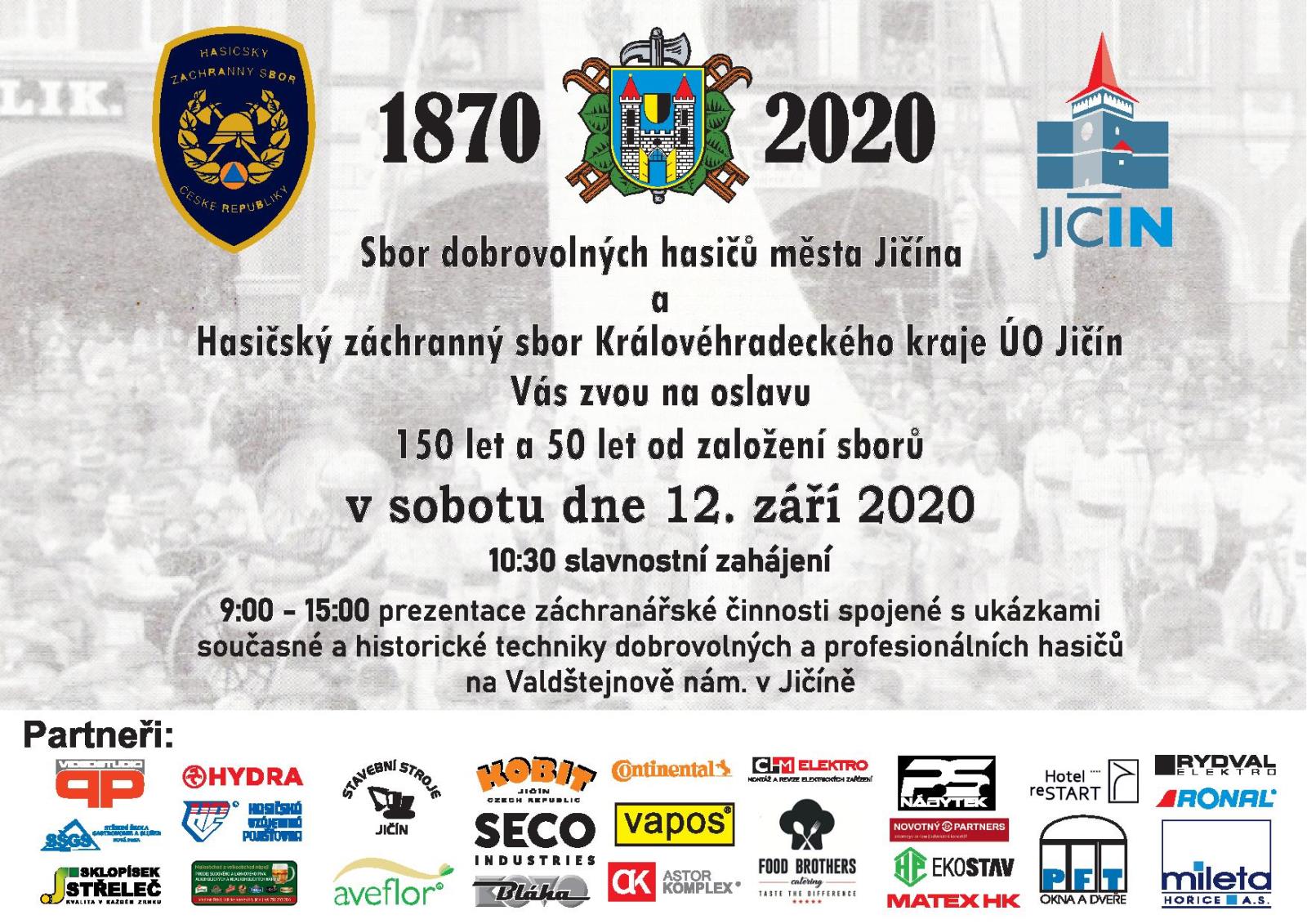 V sobotu 12. 9. 2020 bude Valdštejnovo náměstí v Jičíně v obležená hasičské techniky - současné i historické. Přijďte oslavit s profesionálními a dobrovolnými hasiči z Jičína jejich výročí.