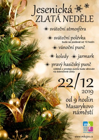 Podobnou tradici mají také hasiči v Jeseníku. Ti prodávají punč hned ve dvou termínech. Poprvé se na Masarykově náměstí s hasičským punčem objeví už tento čtvrtek 5. prosince na vítání Mikuláše. Podruhé pak budou prodávat punč na zlatou neděli 22. prosince znovu. Tentokrát už od 9 hodin ráno a kromě hasičského punče se můžete těšit také na sváteční polévku na zahřátí. Výtěžek z obou prodejních akcí v Jeseníku poputuje dětem z Dětského domova v Černé Vodě.