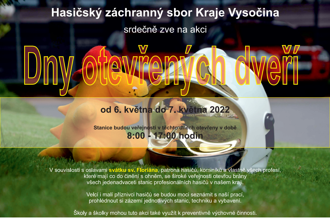 Srdečně zveme na Dny otevřených dveří od 6.května do 7.května 2022... V souvislosti s oslavami svátku sv. Floriana patrona...