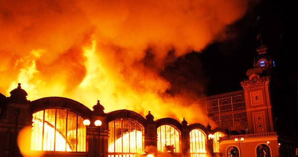 Požár Průmyslového paláce na pražském holešovickém výstavišti