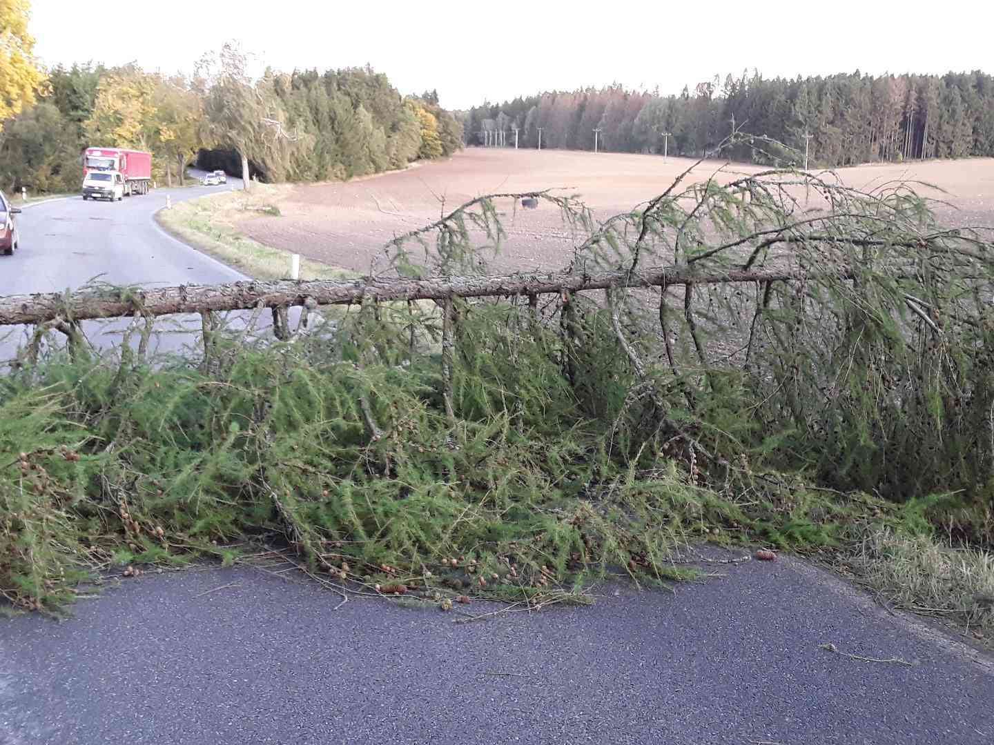 30. 9. 2019 (NZ) - V souvislosti se silným větrem vyjížděli hasiči již k 629 událostem. Nejvíc v kraji Středočeském, Plzeňském, Jihočeském a na Vysočině. Hasiči odstraňují popadané stromy a větve na komunikacích, kde brání provozu, stromy popadaly také na zaparkovaná auta, domy, nebo dráty vysokého napětí. V několika případech zasahovali hasiči u utržené střešní krytiny.