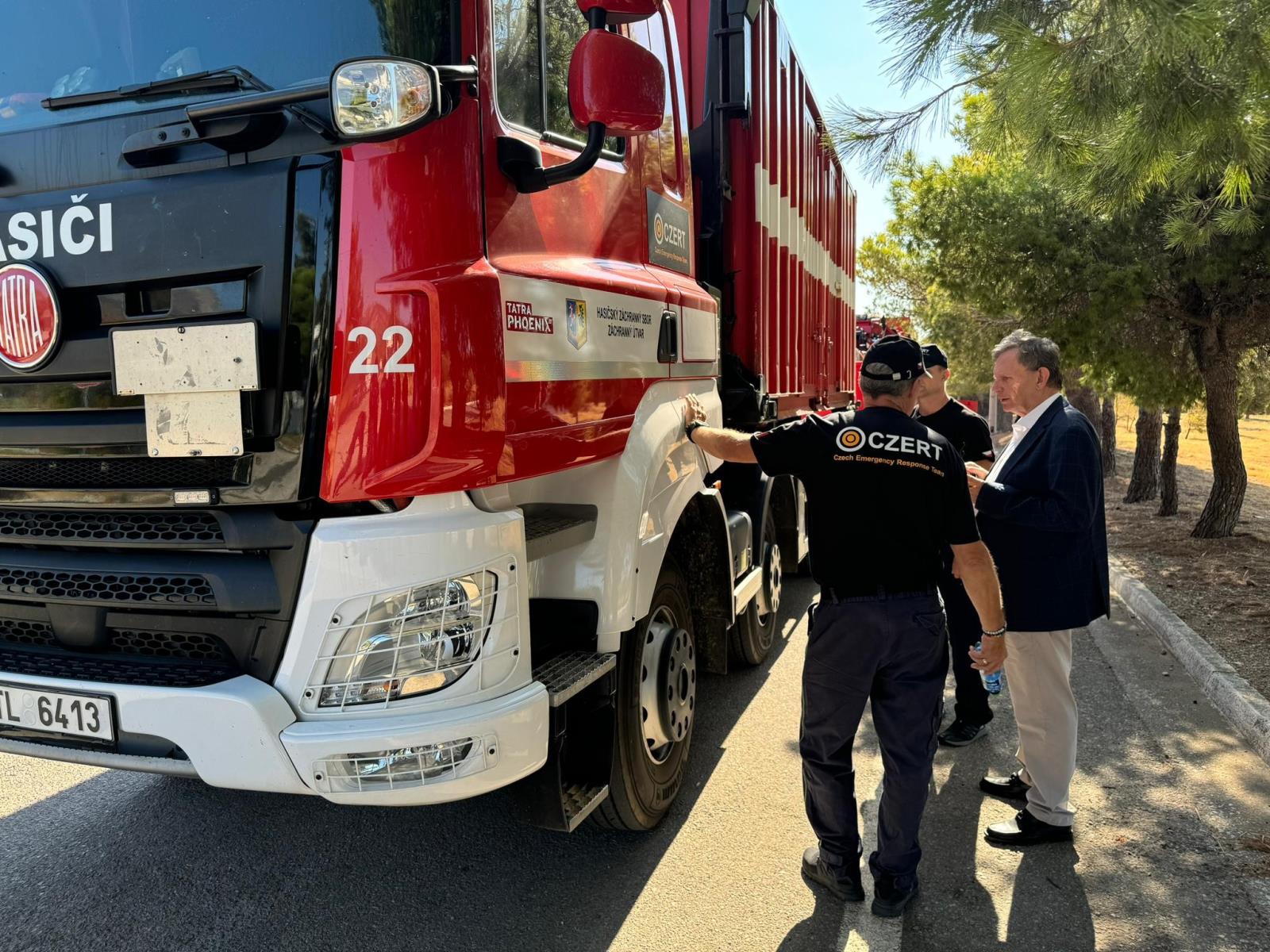 Dnes ráno dorazili čeští hasiči po třech dnech cesty do nejvíce zasažené oblasti řeckých Athén. Po příjezdu se setkali s českým velvyslancem a velením řeckých hasičů. Řešily se zejména postup a místo nasazení českého týmu.