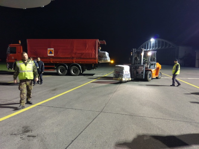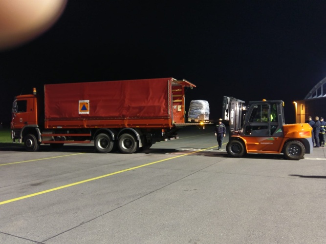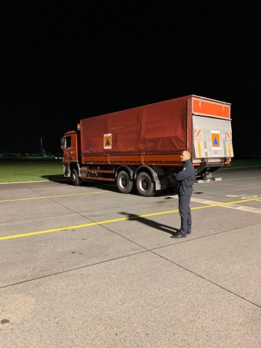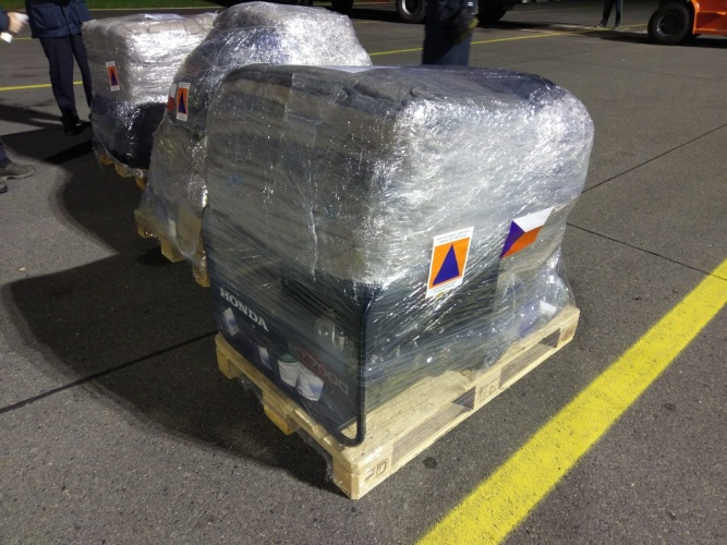 dnes 17.dubna 2019, nad ránem, naloženo celkem 16 ks elektrocentrál, 16 ks kalových čerpadel, 480 přikrývek, 96 spacích pytlů s vložkou a 16 stanů.