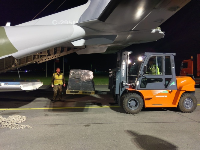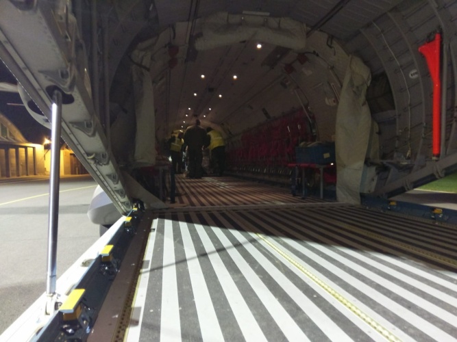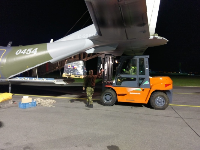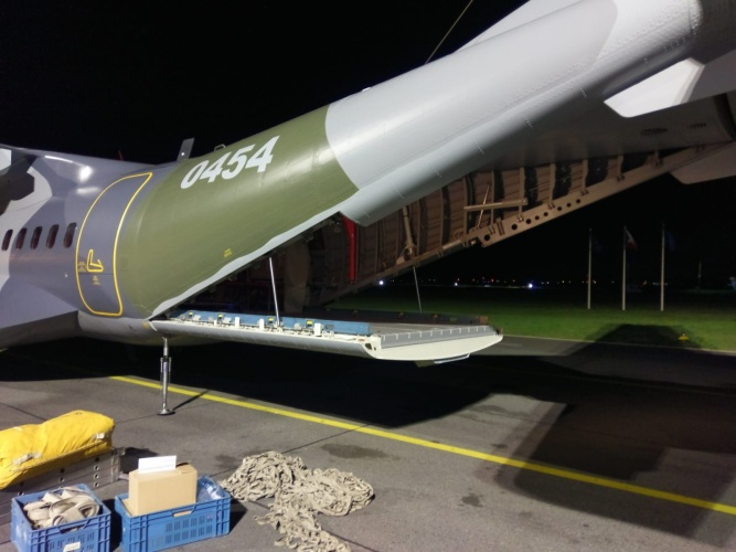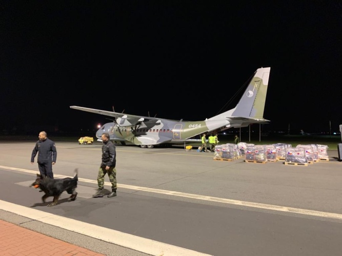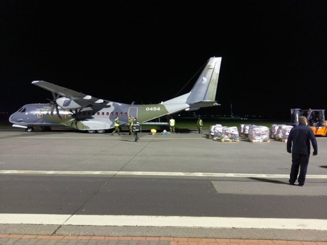 Do armádního letadla CASA bylo dnes 17.dubna 2019, nad ránem, naloženo celkem 16 ks elektrocentrál, 16 ks kalových čerpadel, 480...