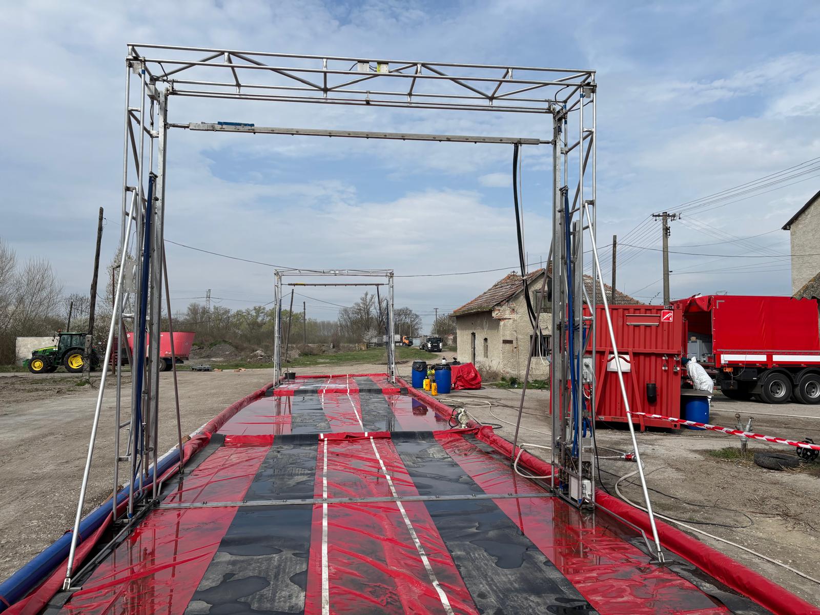 Zavedení dekontaminačních opatření je jedním z nejúčinnějších způsobů, jak zastavit expanzi virové nákazy. Na stanovišti v obci Lúč na Ostrove hasiči vybudovali dekontaminační koridor, kterým projíždí zemědělská a dopravní technika přicházející z postižených oblastí.