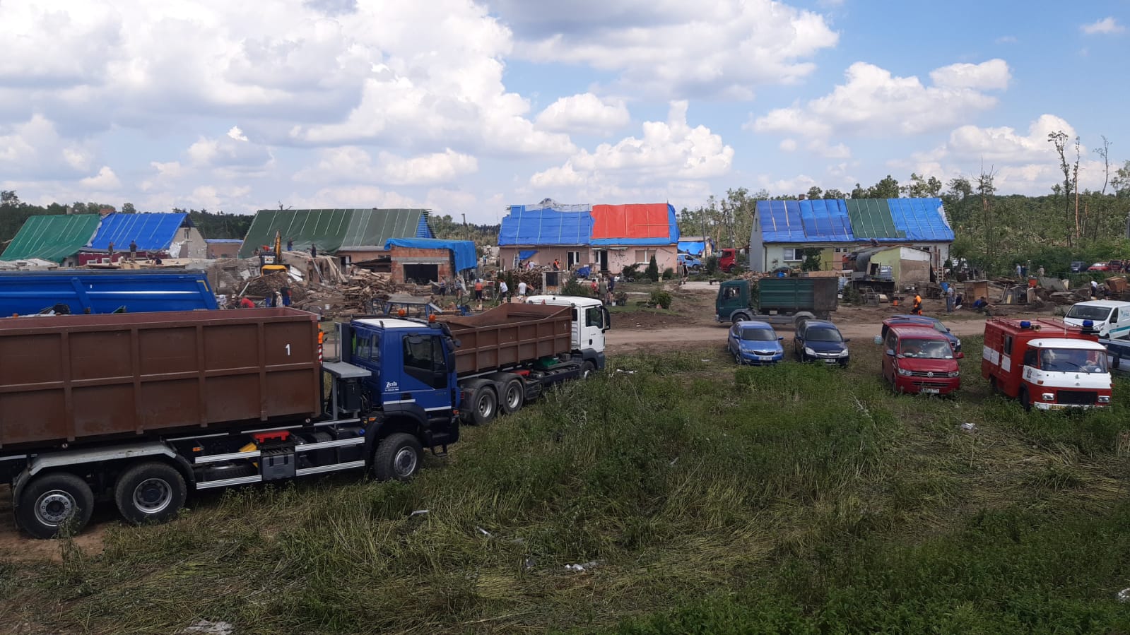 26. 6. 2021 (RK) - Zásah hasičů v několika obcích na Břeclavsku a Hodonínsku pokračuje. Změnil se charakter zásahové činnosti, kdy hasiči ukončují záchranné práce a pokračují v pracích likvidačních, které mají odstranit následky způsobené mimořádnou událostí, tedy tornádem.
