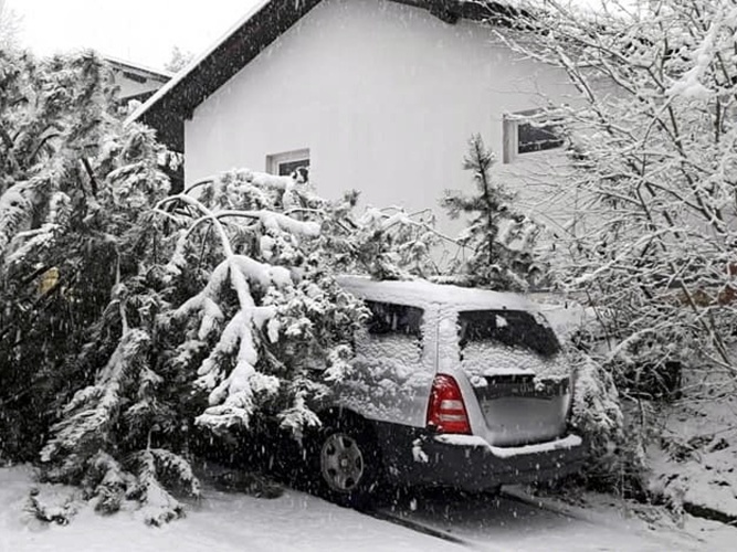 Na Bílé Hoře v Plzni spadl strom na automobil a v Srbech na Plzeňsku zase najel vlak do spadlého stromu. Naštěstí ani v jednom případě nebyl nikdo zraněn.