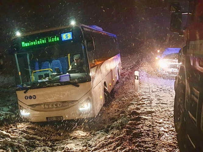 Kalamitní stav byl na mnoha komunikacích a hasiči vyjížděl také ke zvýšenému počtu dopravních nehod. Mezi ty nejzávažnější patřily hned tři nehody autobusů. Čtyři jednotky hasičů odstraňovaly vzpříčený autobus na silnici II/190 na Klatovsku. Z autobusu bylo evakuováno 23 osob, kterým bylo poskytnuto nouzové ubytování.