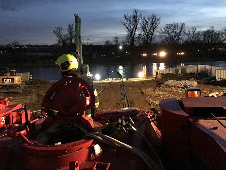 samotné vytažení lávky. V 18. hodin bylo nutné techniku přesunout tak, aby bylo možné dokončit