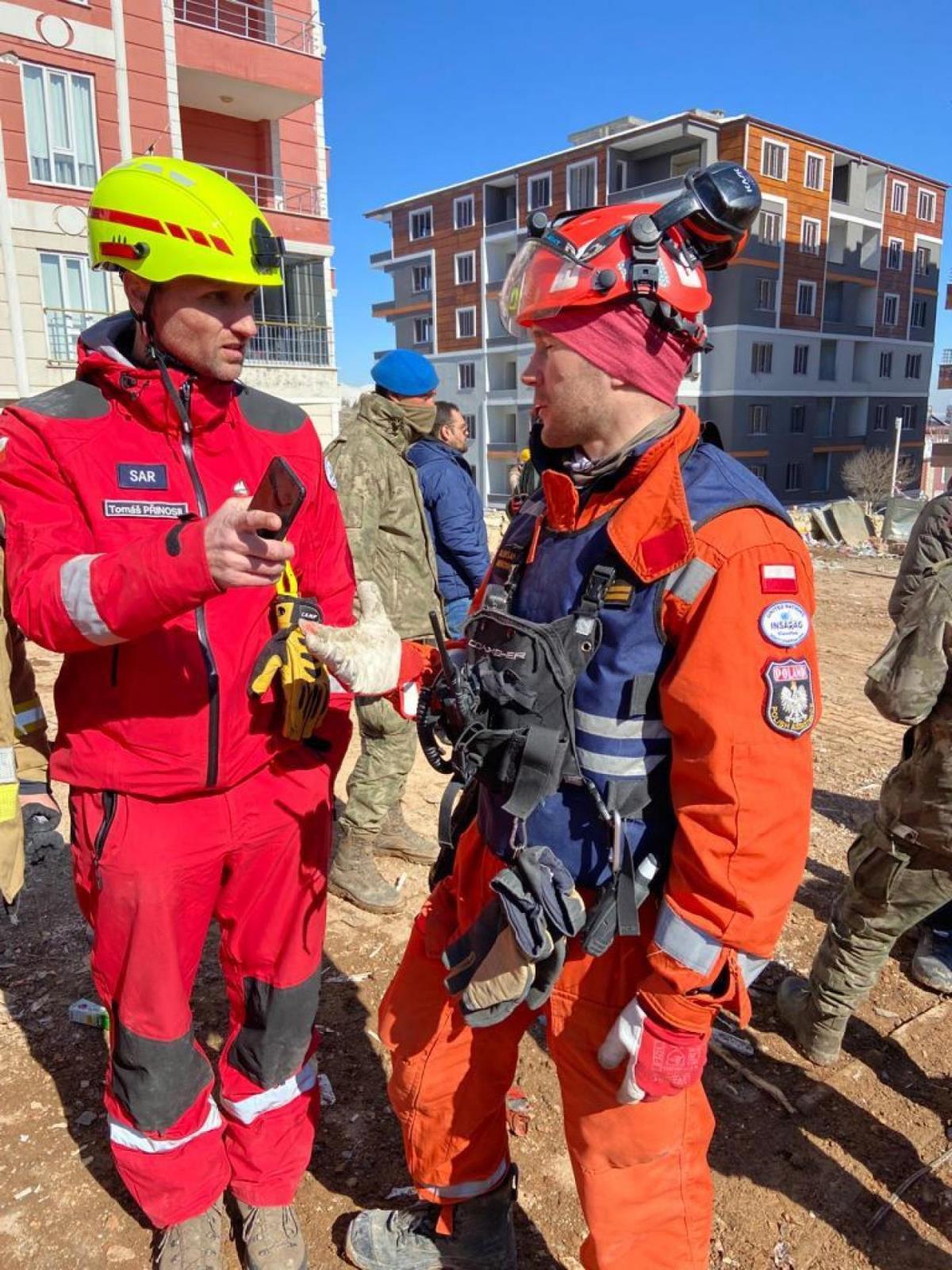 Neděle, 12. února - Český USAR tým doplnili další dva hasiči, kynologové pomáhali polským kolegům s prohledáváním sutin