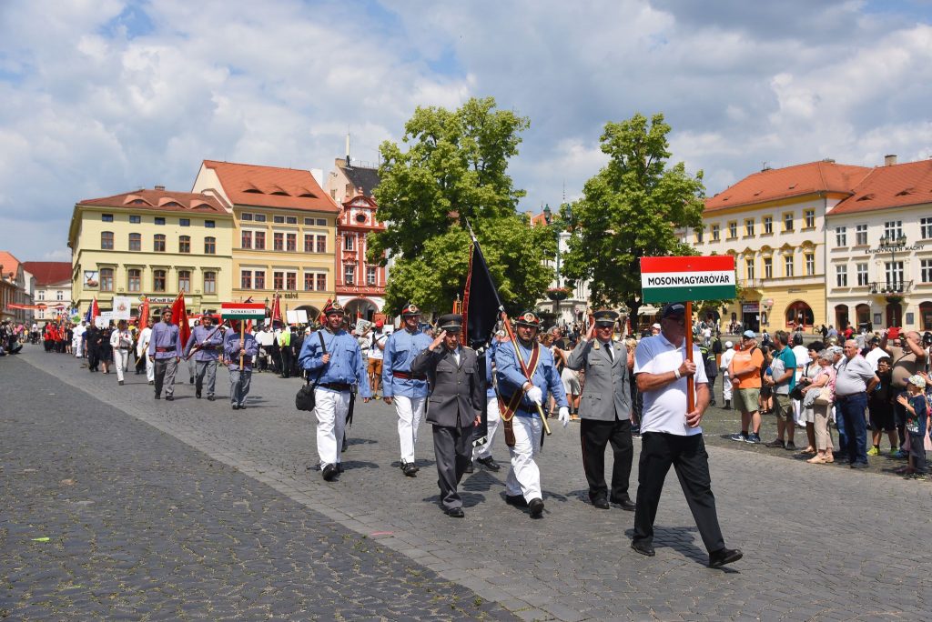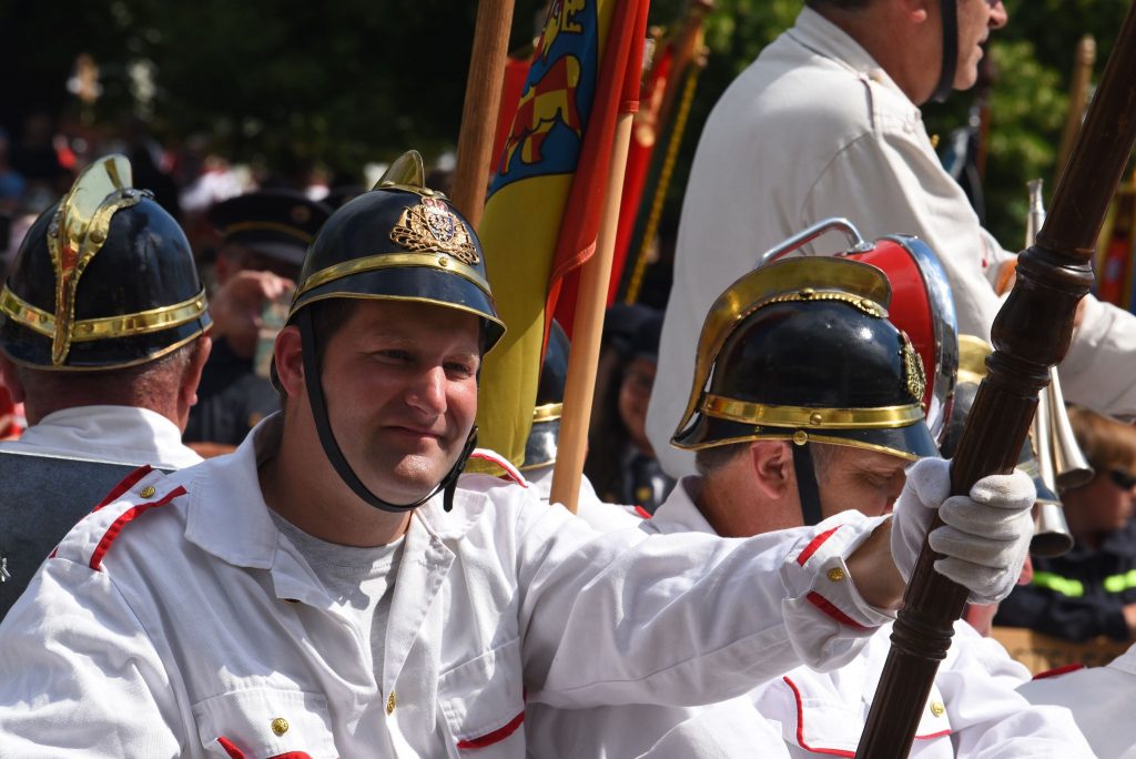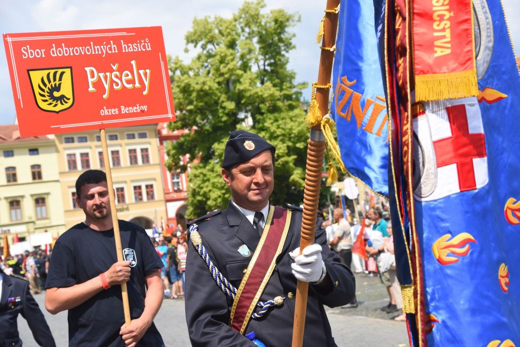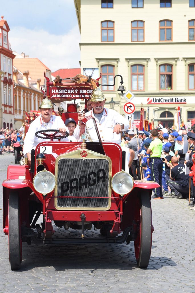 Sobotní dopoledne patřilo slavnostnímu nástupu. Na Mírovém náměstí defilovalo přes 170 sborů a vidět jsme mohli přes 100 historických praporů. V průvodu jelo 47 kusů historické a 18 kusů moderní techniky. Hasičské stříkačky táhlo 15 párů koní a byly zařazeny také čtyři traktory. Nejstarší automobil v průvodu byl z roku 1910, šlo o vůz značky Laurin a Klement a do Litoměřic dorazil z Kolína. Akci zakončil přelet letounů Armády ČR JAS-39 Gripen.
