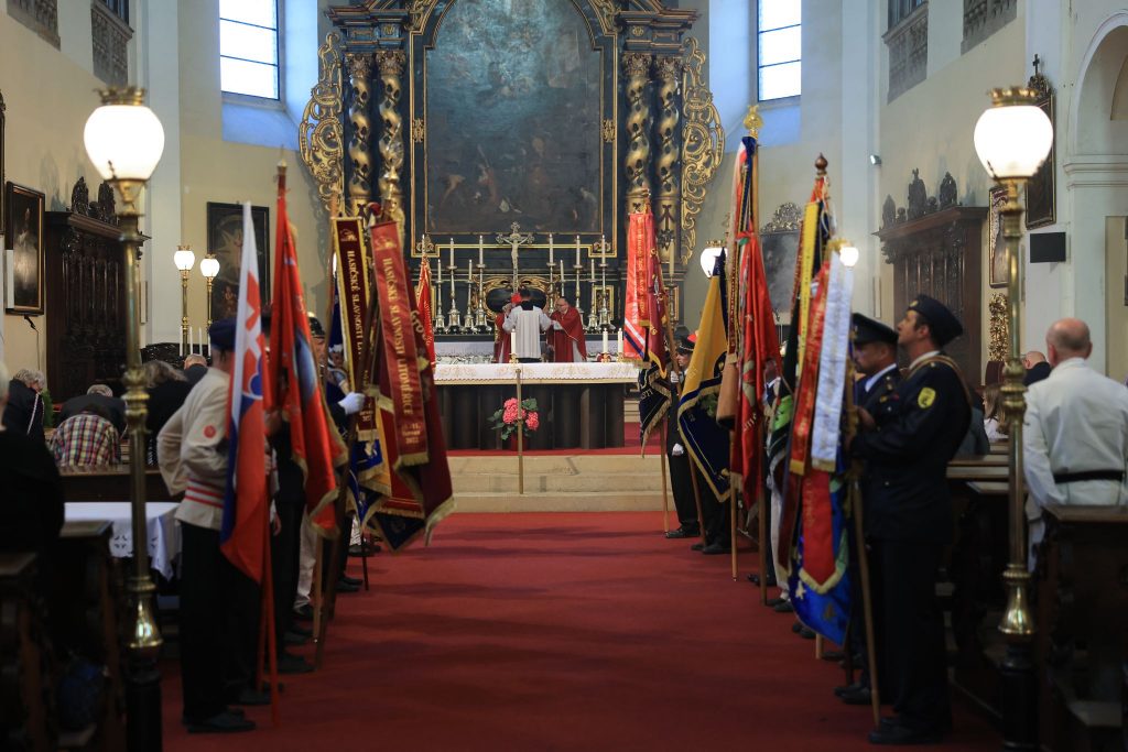 Nedílnou součástí oslav je také páteční Floriánská mše, celebrovaná v katedrále sv. Štěpána v Litoměřicích. Sbory přinesly 38 praporů a katedrála byla naplněna do posledního místa. Jeho Eminence, mons. Jan Baxant, biskup litoměřický, pro hasiče, organizátory, ale i návštěvníky a místní farníky celebroval speciální Floriánskou mši svatou.