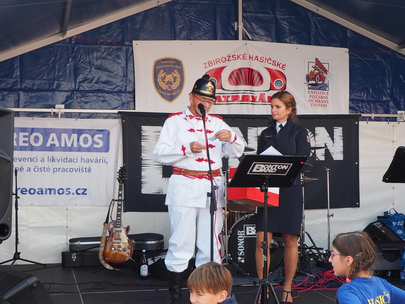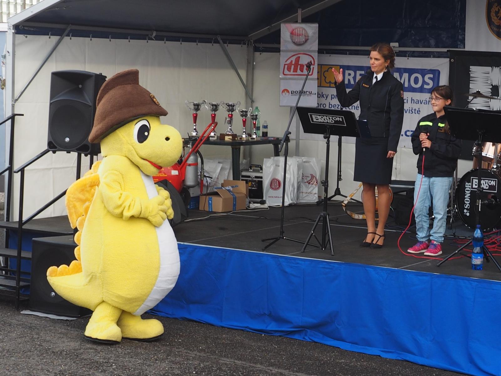 Bohatý program okořenilo vystoupení malých hasičátek - Soptíků z Němčovic. Děti přijely vlastním hasičským autem a předvedly perfektně secvičenou a okomentovanou ukázku přípravy hasičů i vlastního zdolání požáru.