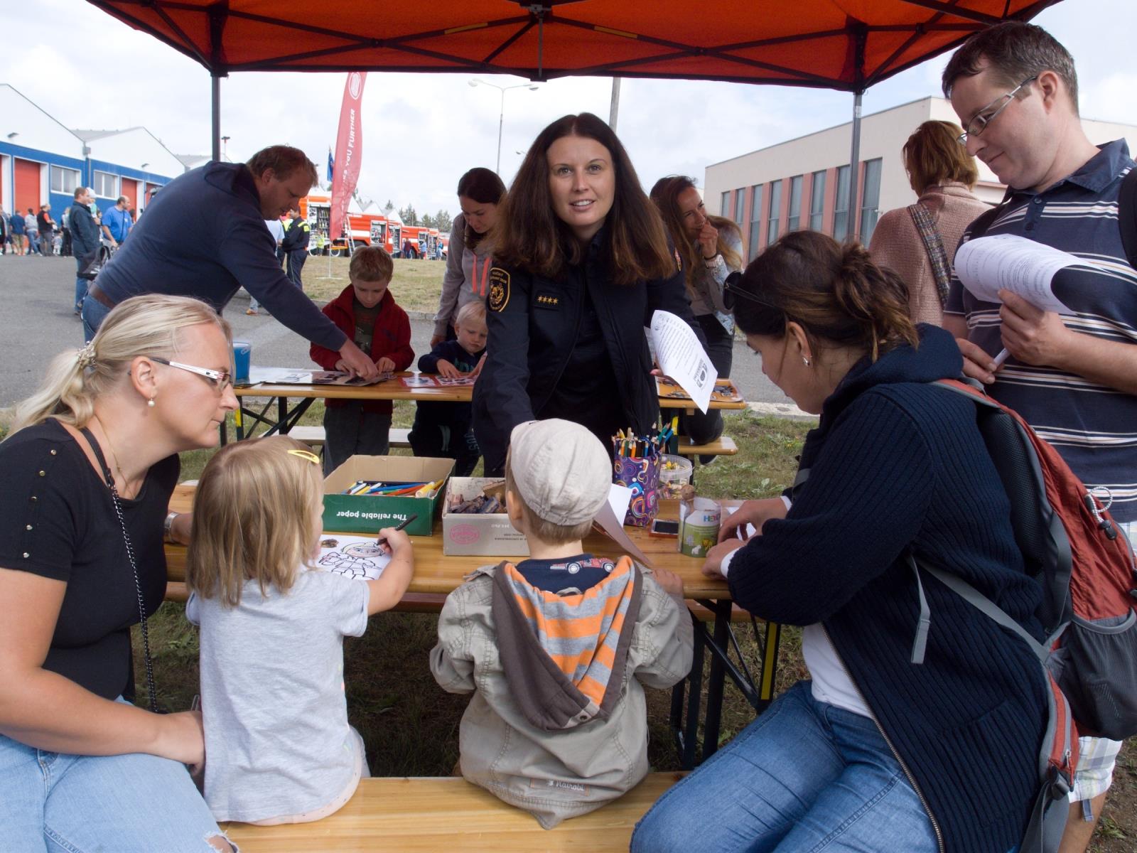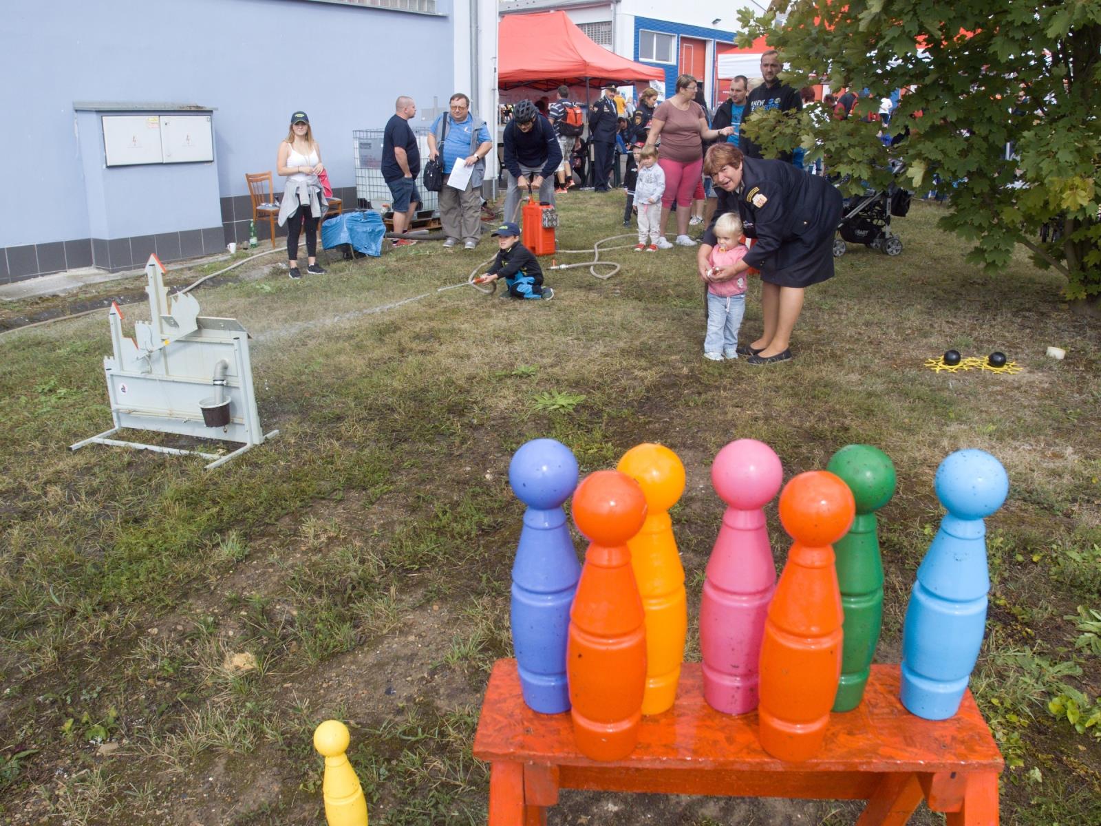 bohatý doprovodný program. Děti hasily hořící hrad, hrály hasičské kuželky a luštily