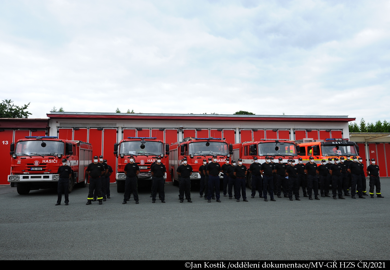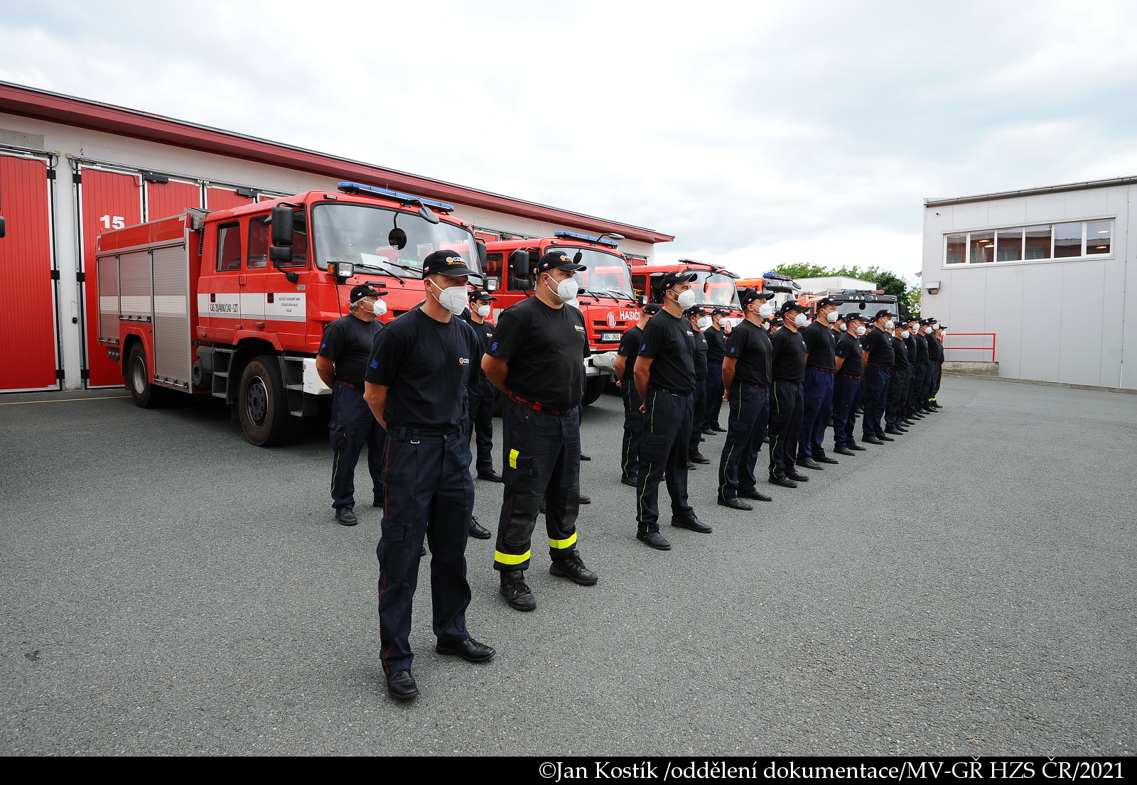 Již následující den, 7. srpna 2021, se před 9. hodinou ranní v areálu ŘSD SSÚD Podivín, nedaleko Břeclavi, shromáždil náš odřad v podobě jednotky MV–GŘ HZS ČR v počtu 36 hasičů, 15 motorových vozidel a dvou přívěsů, sestavený z příslušníků HZS MSK, HZS JMK, HZS SČK, ZÚ HZS ČR a styčného důstojníka z HZS PHA. Velitelem jednotky byl určen kpt. Richard Franc, jeho zástupcem plk. Lukáš Kmec. Po přečtení rozkazu generálního ředitele HZS ČR vyrazila jednotka v 10:45 do řeckých Athén, tedy za méně než 24 hodin od doručené žádosti řecké strany.