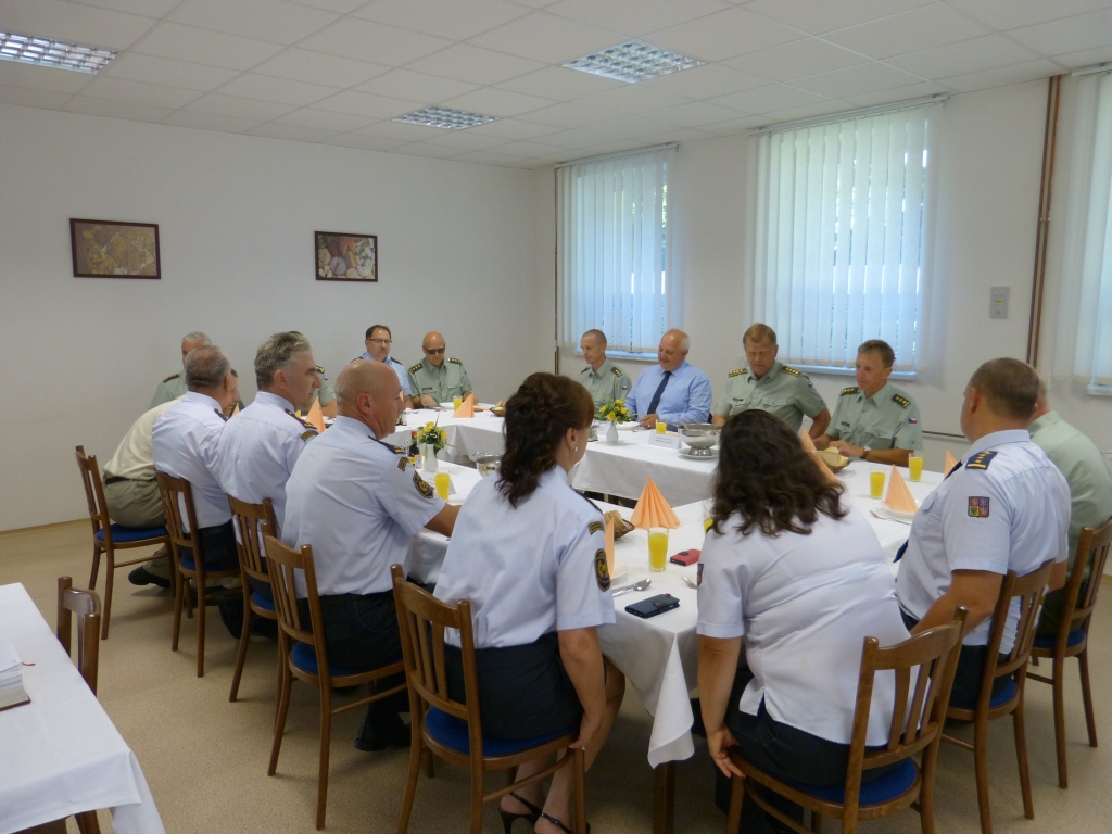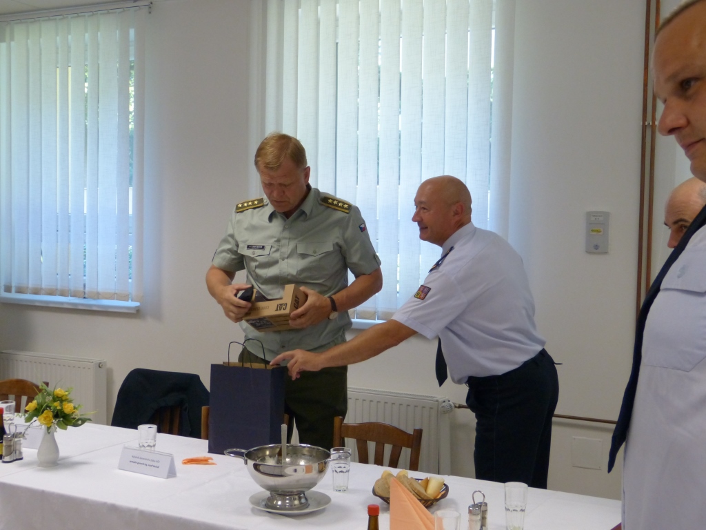 Návštěva byla zakončena společným obědem, jehož se zúčastnil i starosta města Mrg. Pavel Paschek a během kterého pokračovala i diskuze na nejrůznější témata. Na závěr ještě došlo k vzájemnému předání drobných darů mezi armádním generálem, velitelem útvaru a starostou města.