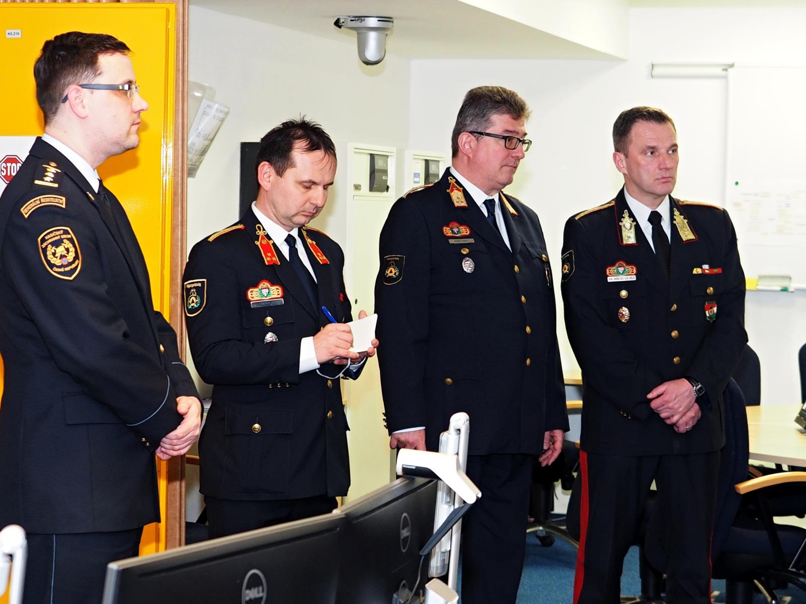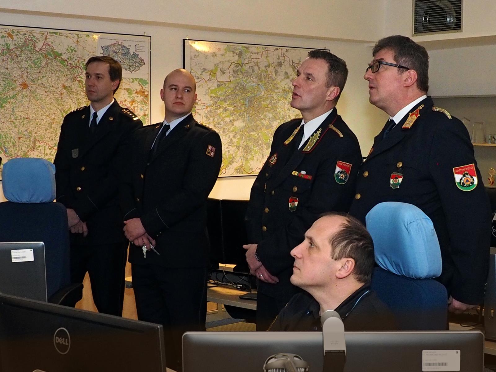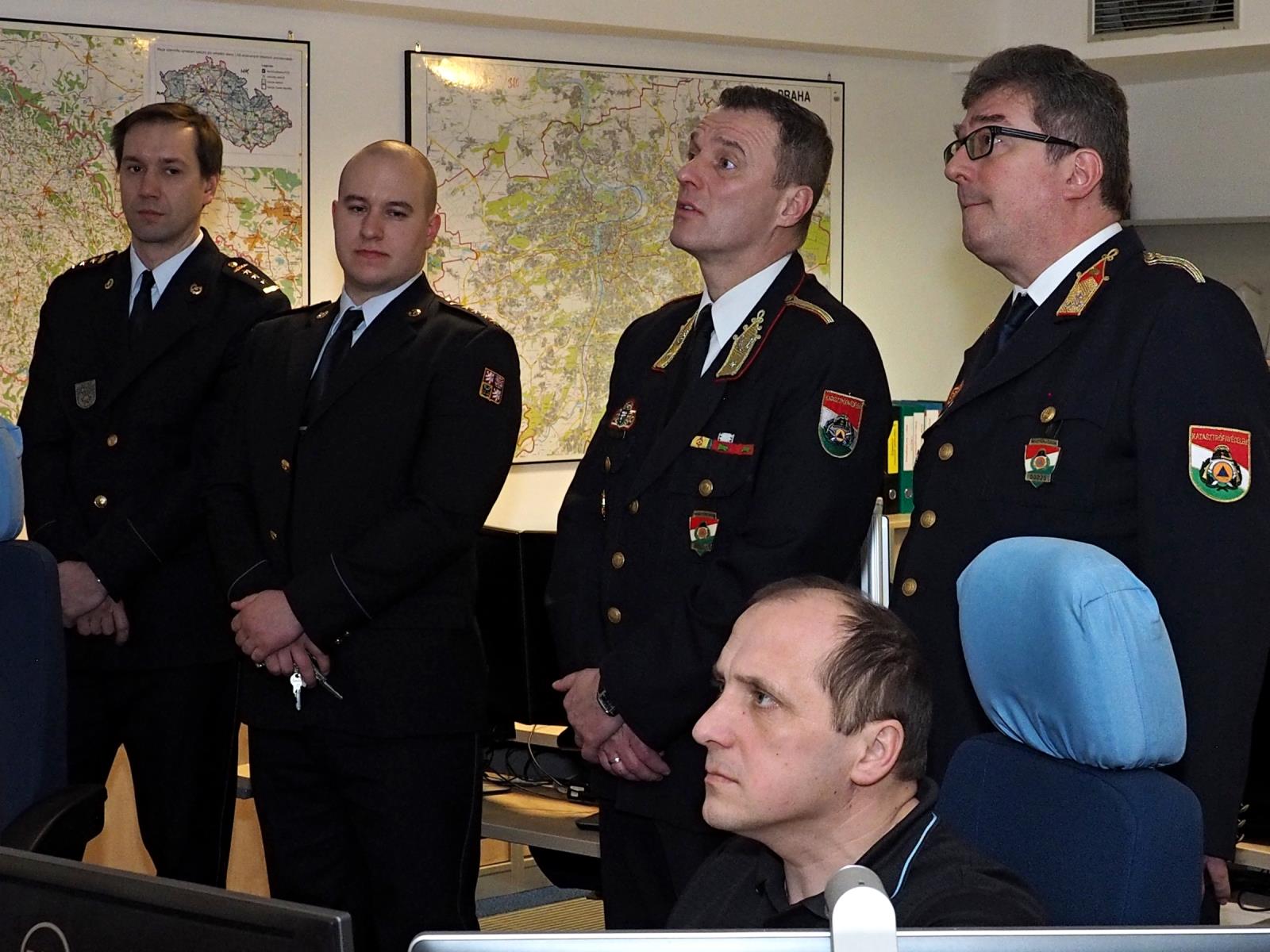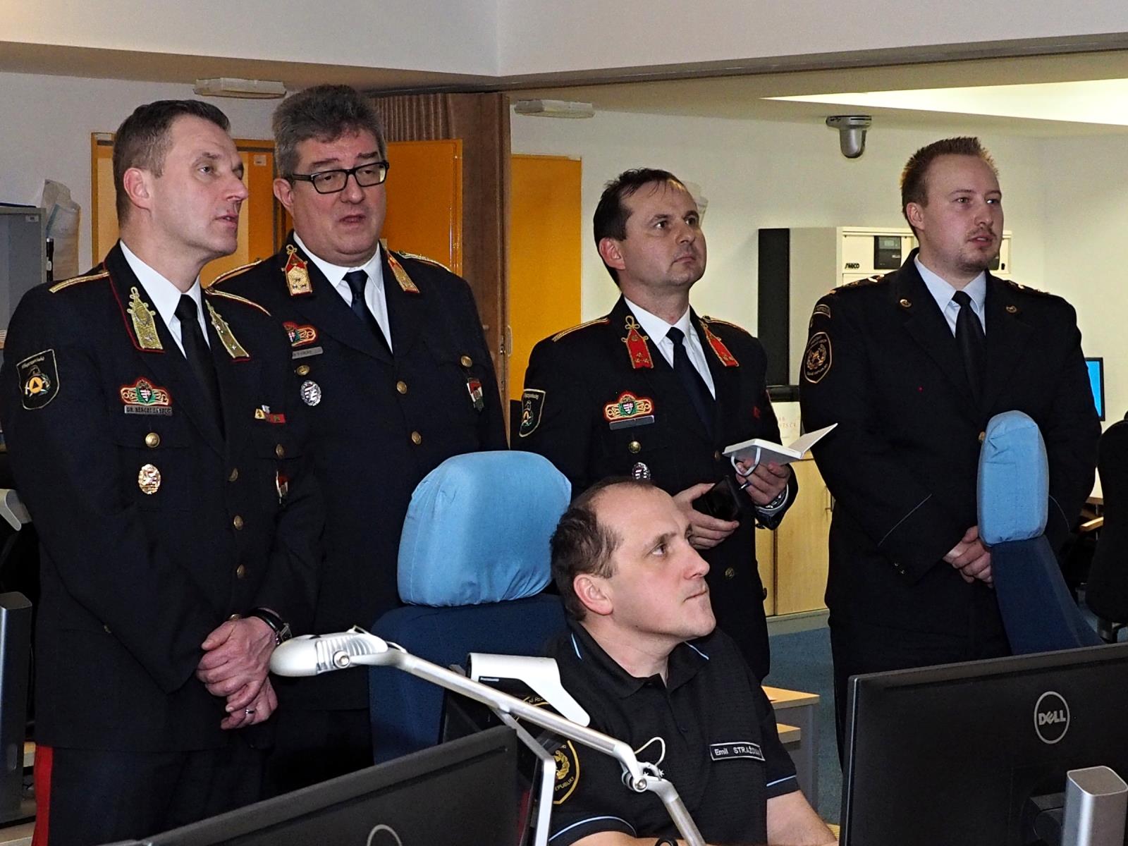 V rámci programu navštívili maďarští kolegové také operační středisko MV–generálního ředitelství HZS ČR, kde je operační důstojník mjr. Mgr. Michal Žůrek seznámil s širokou škálou činností prováděných na tomto operačním středisku.
