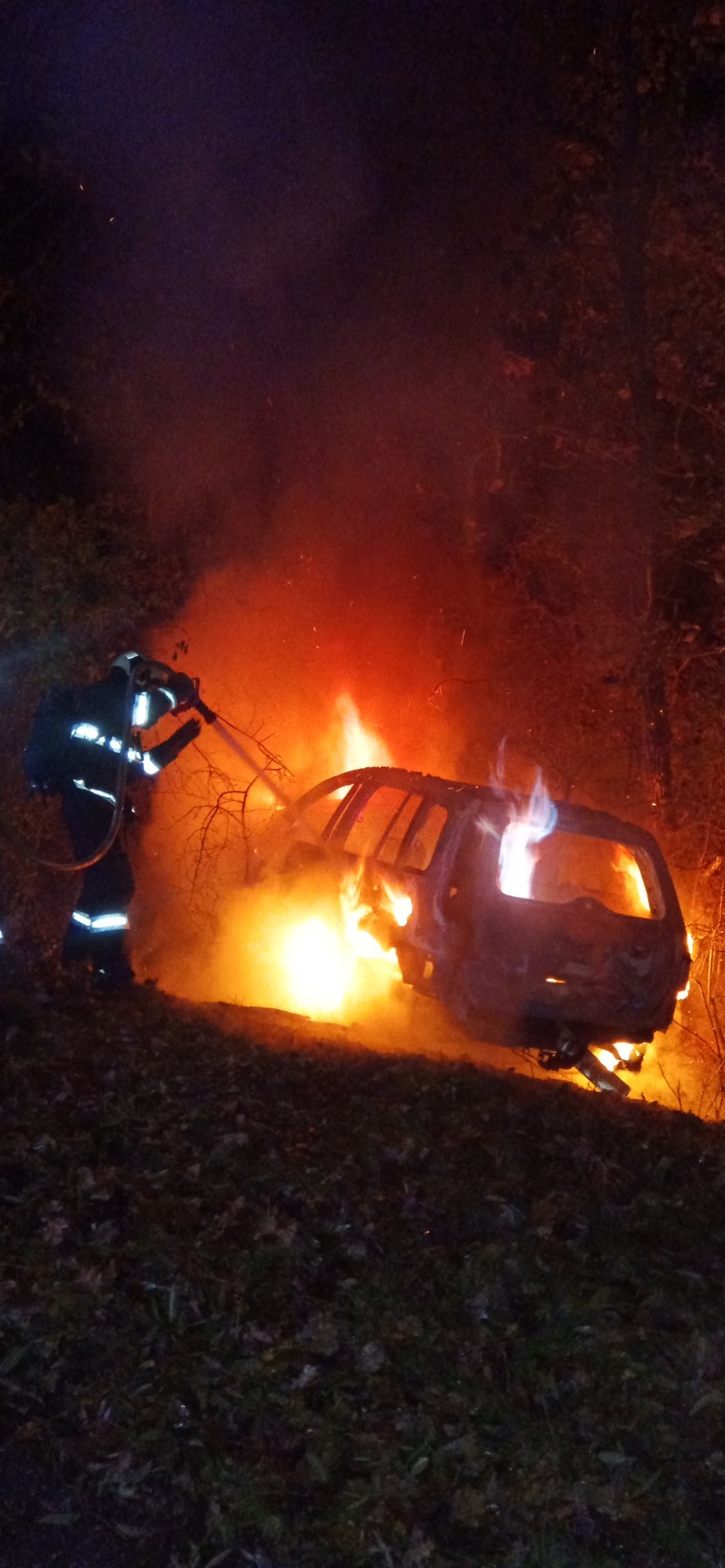 Podle informací Hasičského záchranného sboru Jihočeského kraje bylo vozidlo v době příjezdu jednotek již celé v plamenech. „Na místě jsme zjistili, že tři osoby utrpěly zranění, ale jsou mimo vozidlo,“ uvedli hasiči. Požár se podařilo lokalizovat během několika minut, následovalo dohašování a ochlazování konstrukce vozu.