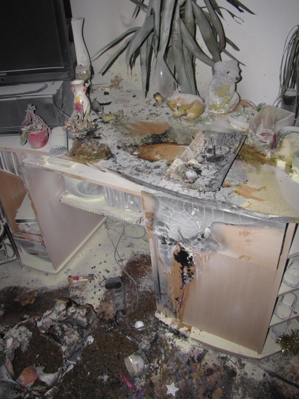 vnikli do bytu a v obýváku našli na stole hořící adventní věnec. Uhasili ho dvěma přenosnými hasicími přístroji. Hasiči pak zkontrolovali řádné uhašení, zasažené doutnající věci vynesli ven na volné prostranství a byt odvětrali.