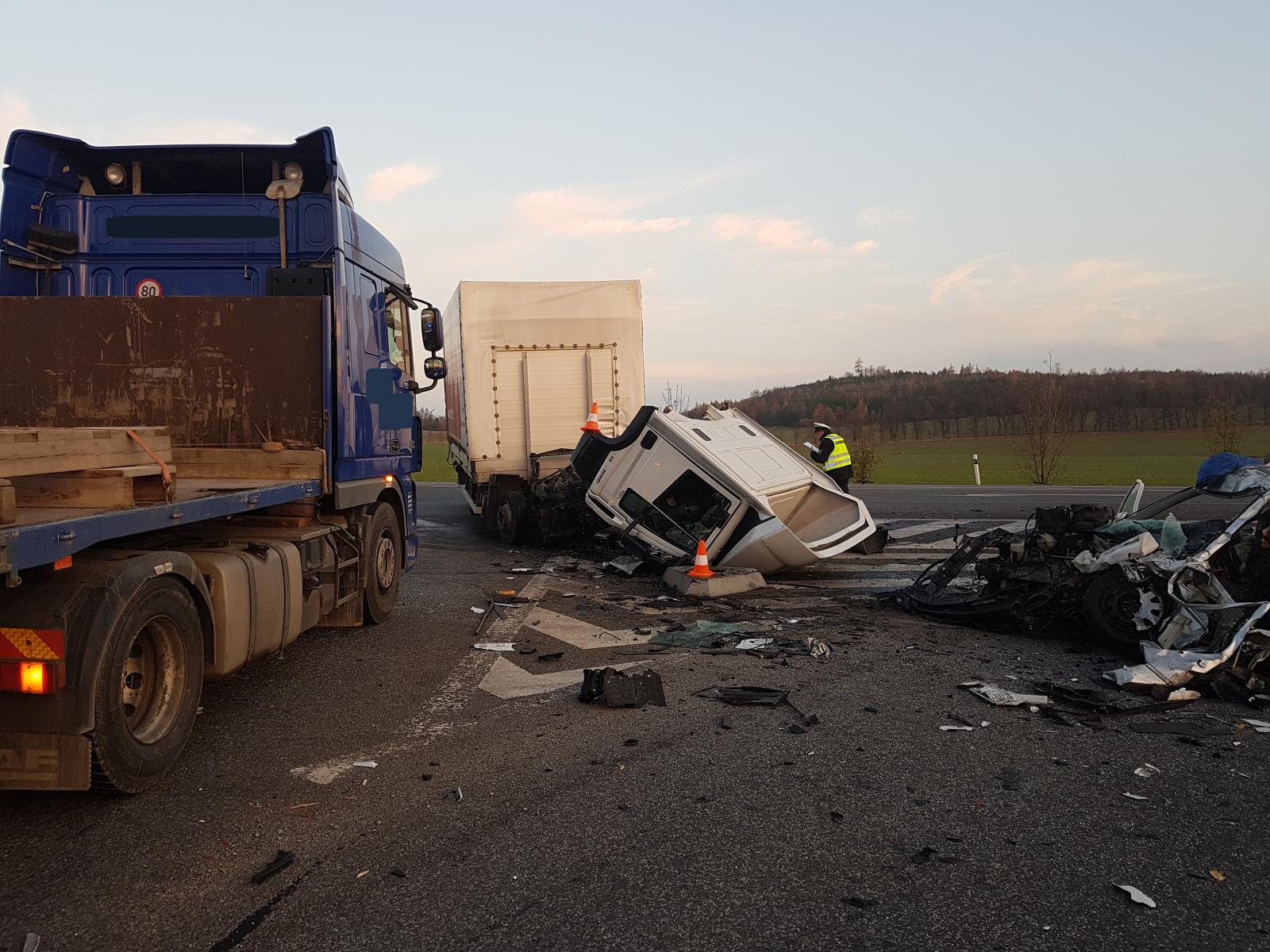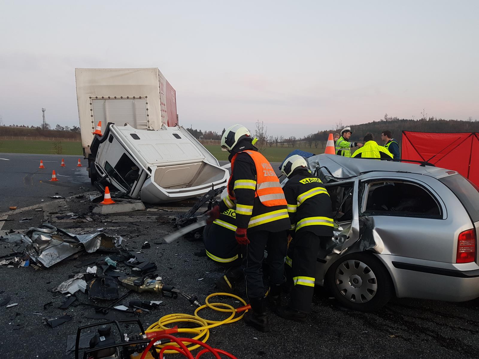 Následkům střetu podlehla. A stejně tak i další tři osoby cestující s ní ve Škodě Octavii. Do nemocnice byl sanitkou transportován zraněný řidič nákladního auta. Vrtulník LZS, který k nehodě také vzlétnul, se vracel