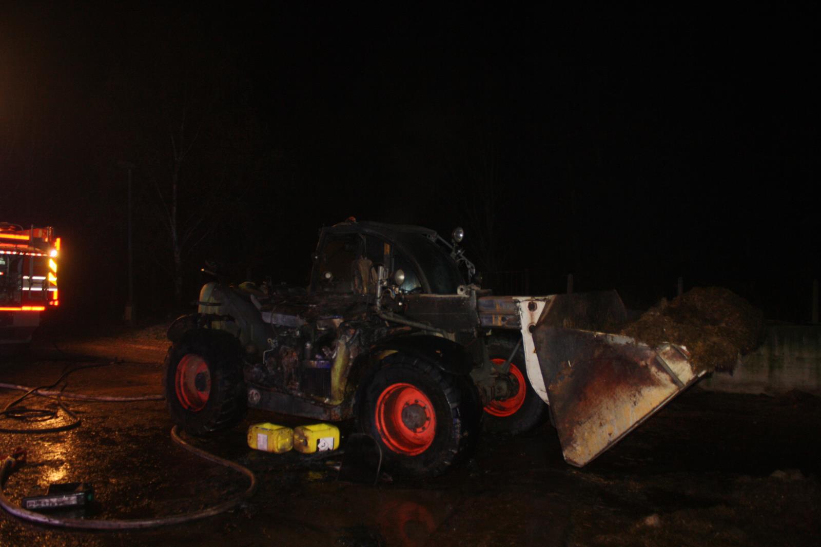 K dalšímu požáru vyjeli v navečerních hodinách do Bohunic se dvěma cisternami profesionální hasiči ze stanice Týn nad Vltavou. V areálu místního zemědělského družstva hořel teleskopický nakladač. Hořící nakladač stál na volném prostranství, požár neohrožoval nic ve svém okolí. Hasiči na likvidaci požáru nasadili jeden vysokotlaký proud a jeden C proud. Zásah vedli v dýchací technice. Zcela uhašen byl požáru v 18:43 hodin. V důsledku požáru z nakladače vyteklo přibližně 250 litrů hydraulického a motorového oleje. Hasiči zabránili pomocí hydrofobních hadů odtoku oleje do kanalizace, zároveň pak po nakladač instalovali dvě jímací nádoby. Požár způsobil škodu za 900 000,-, uchráněné hodnoty jsou nulové. Příčinu vzniku požáru šetří vyšetřovatel HZS.