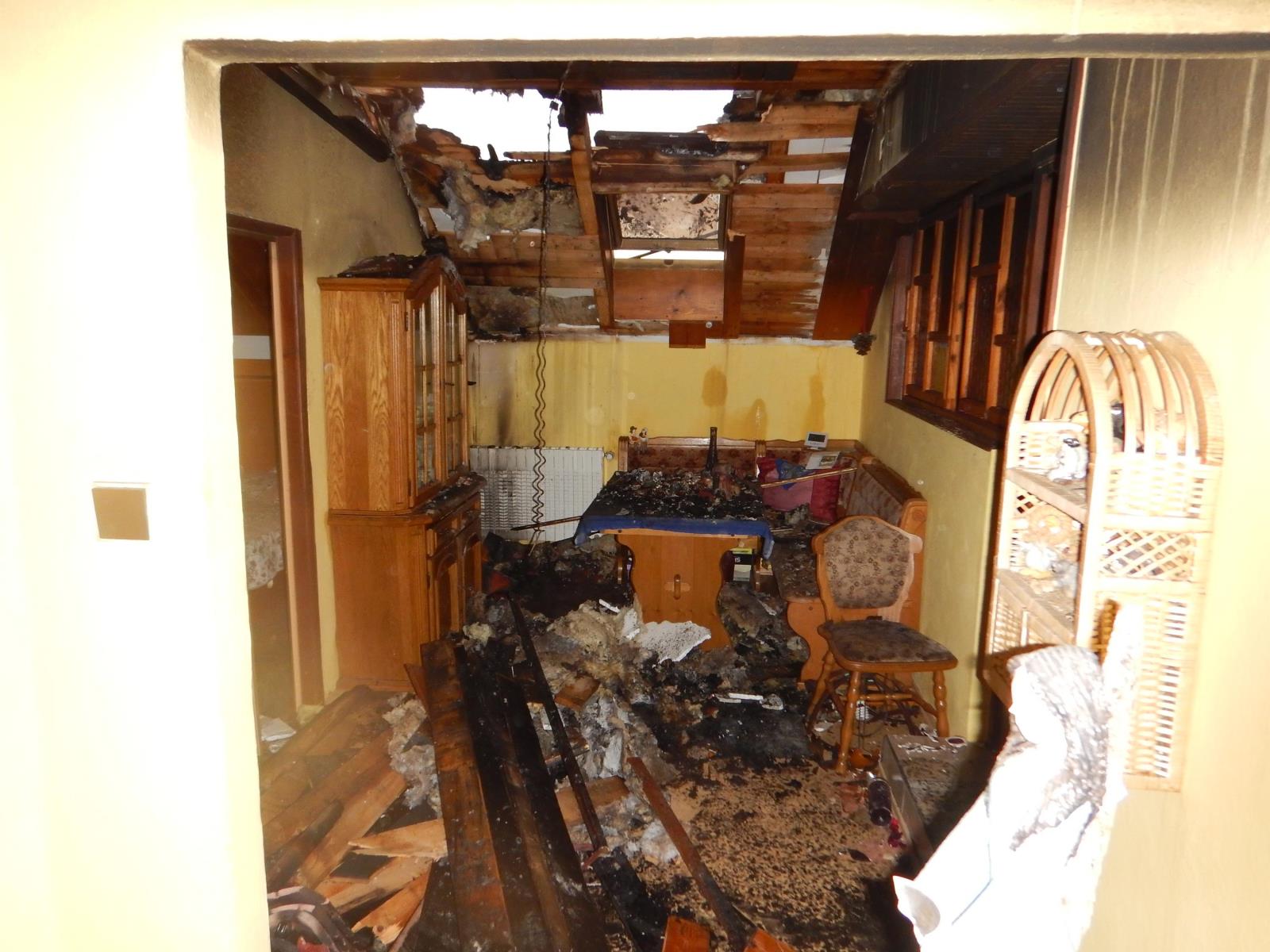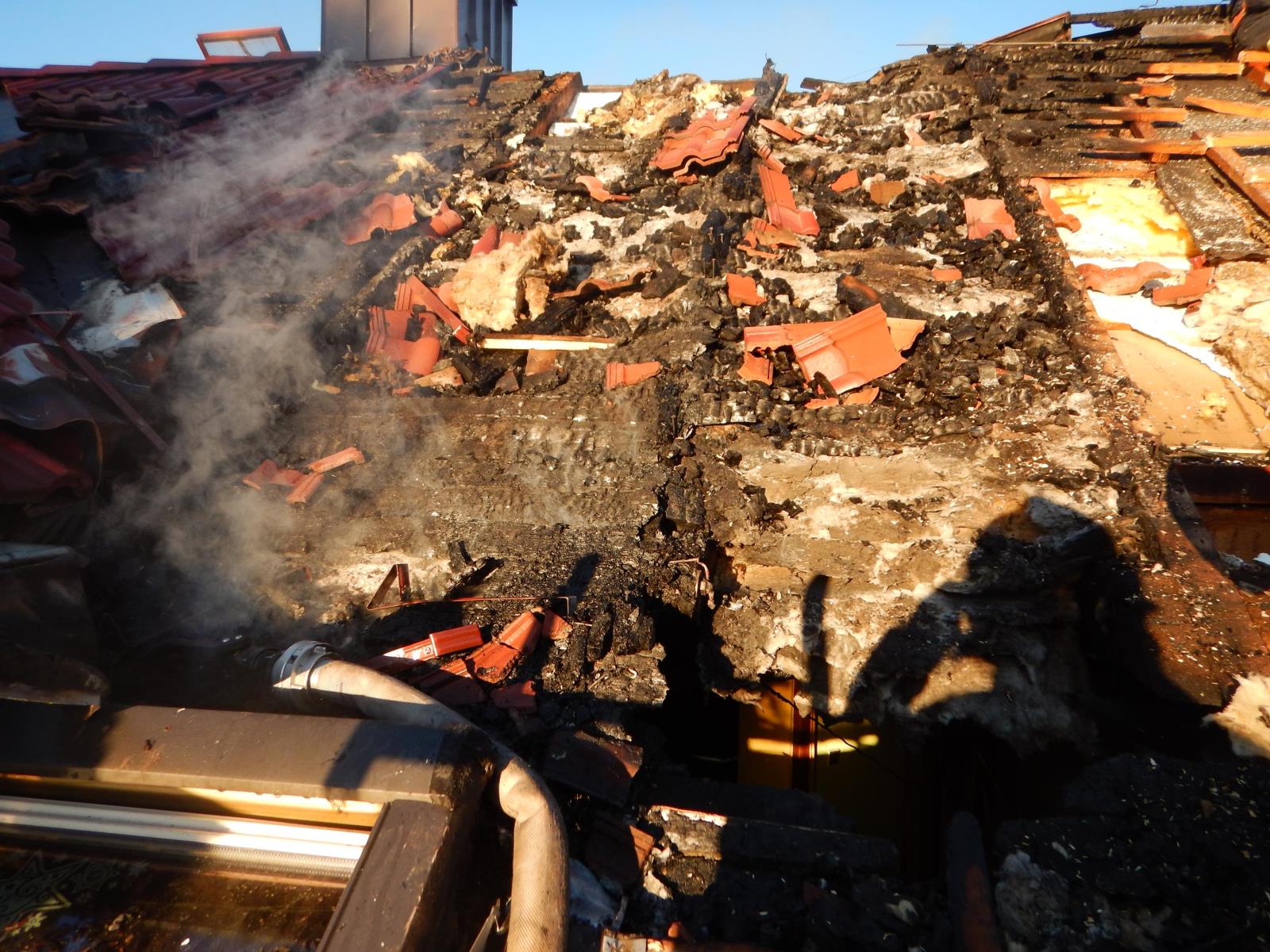 Původně „jen“ požár sazí v komínovém tělese se rozšířil i na blízkou střešní konstrukci. Hasiči vedli zásah jak z vnějšku domu z automobilového žebříku, tak také vnitřkem, kdy prohledávali celou půdy, aby zjistili, kam až se požár rozšířil. Požár zasáhnul přibližně třetinu střešní konstrukce o rozměrech cca 10 x 5 metrů z obou stran. Několik minut po 16. hodině velitel zásahu podal zprávu, že požár je pod kontrolou, že je lokalizován. Rozebírání konstrukce a dohašování pak zasahujícím hasičům zabralo další hodinu.