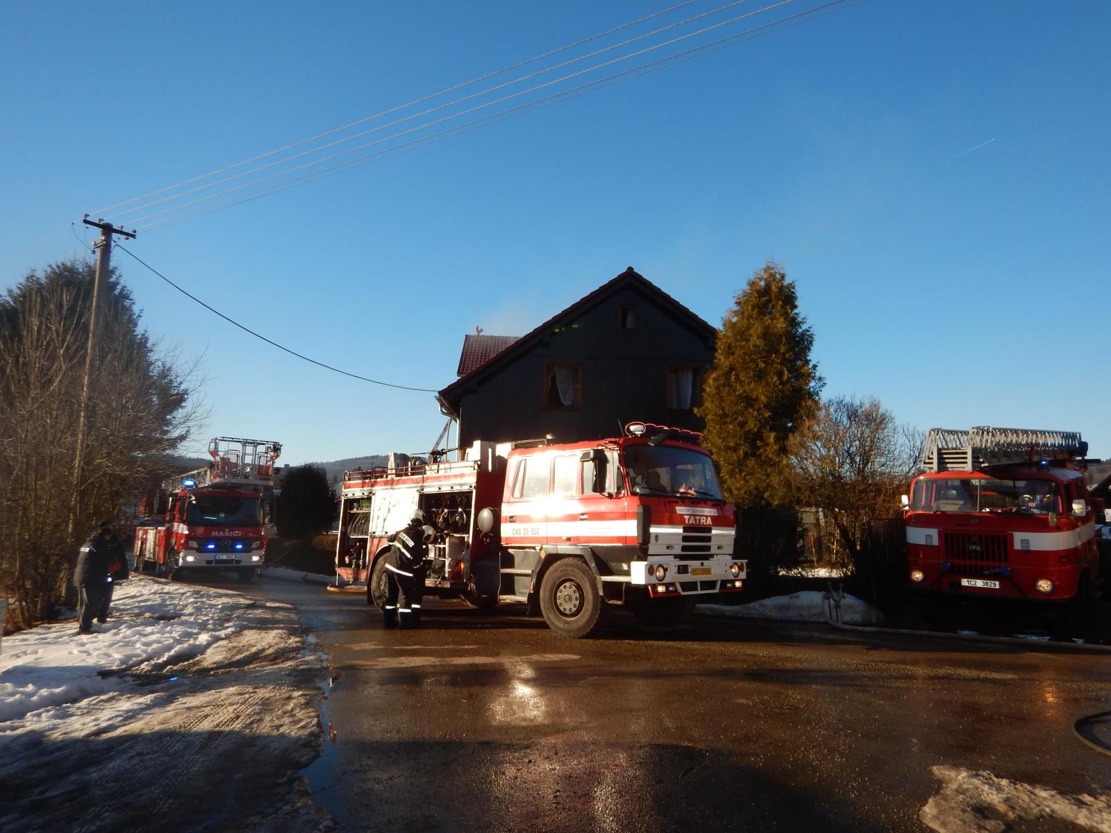 Profesionální hasiči ze stanice Prachatice a dobrovolní hasiči obce Volary byli ve středu 15. února ve 14:51 hodin včetně výškové techniky vysláni ve Volarech do Mlýnské ulice k ohlášenému požáru.