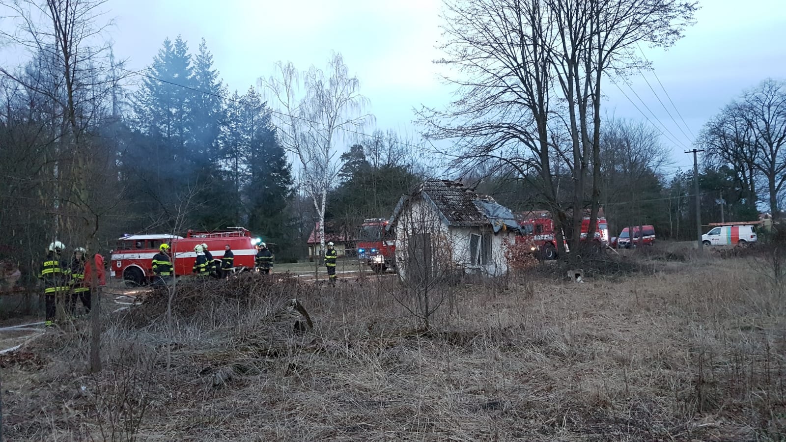profesionální hasiči ze stanice Třeboň a Jindřichův Hradec dohromady se třemi cisternami a automobilovou plošinou. Zároveň byly svolány jednotky SDH obcí Stráž nad Nežárkou, Třeboň - Branná, Mníšek, Jindřichův Hradec a Chlum u Třeboně s dalšími čtyřmi cisternami a dvěma dopravními automobily.