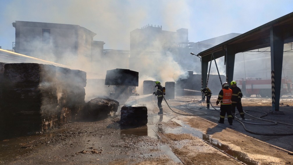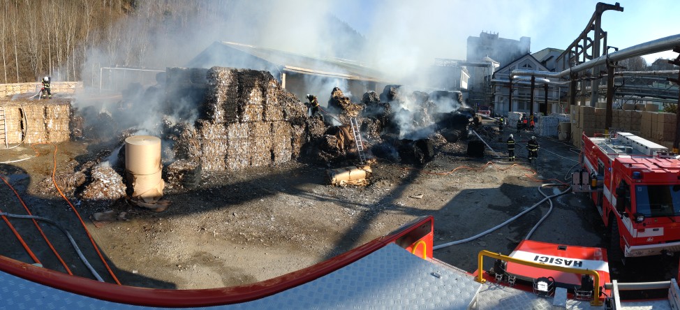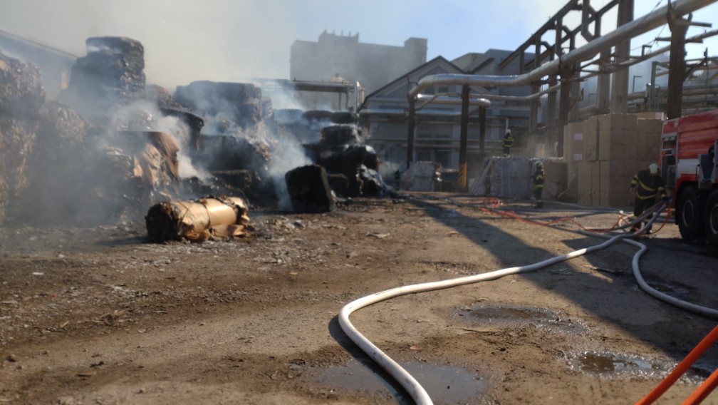Průzkum na místě ukázal, že nehoří výrobní hala, ale lepenkový odpadový papír, který byl v balíkách rozložen částečně na volném prostranství mezi výrobními halami a částečně uložen pod ocelovým zastřešením. Veškerý hořící materiál byl mimo výrobní haly.