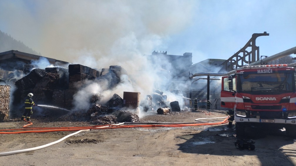 Sedm jednotek hasičů bylo v neděli 13. března krátce po obědě vysláno do areálu papíren ve Větřní.