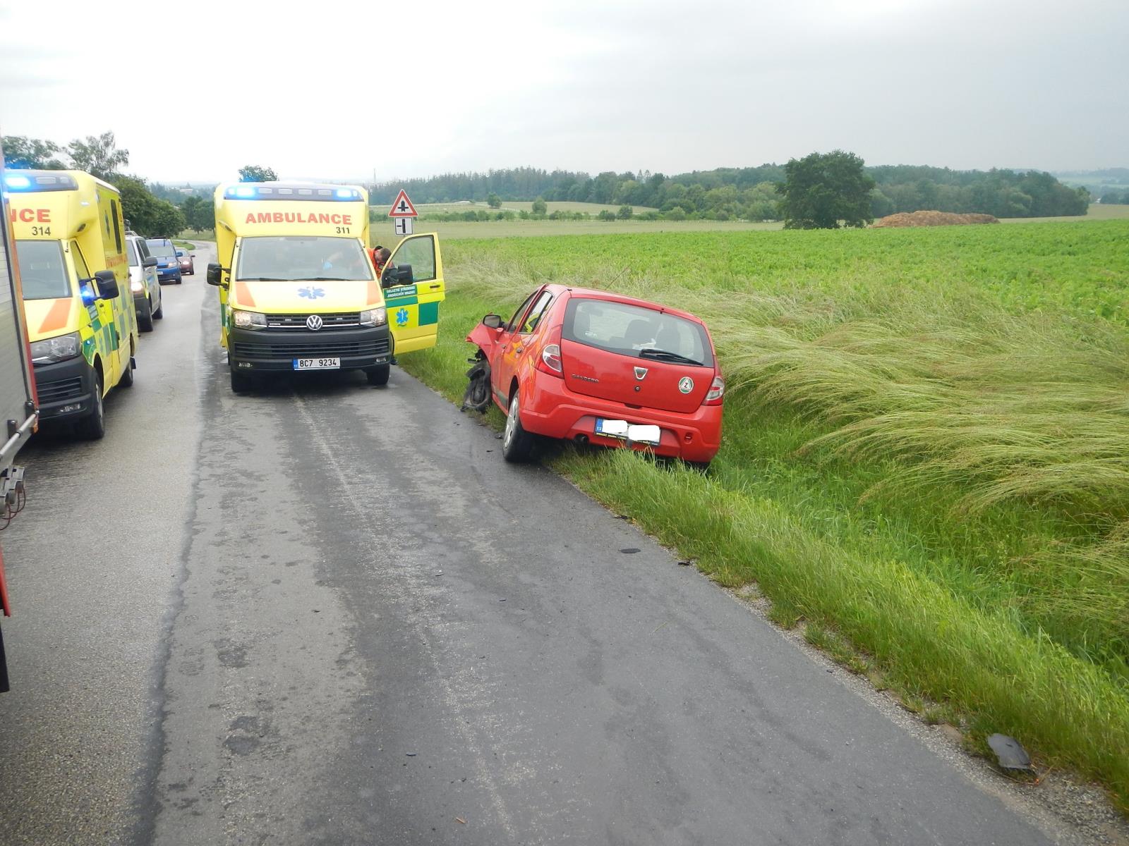 Informaci o nehodě obdrželi hasiči na tísňovou linku v 10:43 hodin. Průzkum na místě ukázal, že došlo ke střetu dvou osobních aut továrních značek Dacia a Škoda Fabia. Ta po nárazu skončila na střeše v příkopu, Dacia zůstala stát na silnici u krajnice. Při nehodě byly zraněny dvě osoby. Obě byly v době příjezdu hasičů z aut venku, vyproštění nebylo potřeba. Jindřichohradecká jednotka provedla u aut protipožární opatření a kontrolu úniku provozních kapalin. V půl dvanácté byla nehoda předána policistům k šetření a hasiči odjeli zpět na základnu.