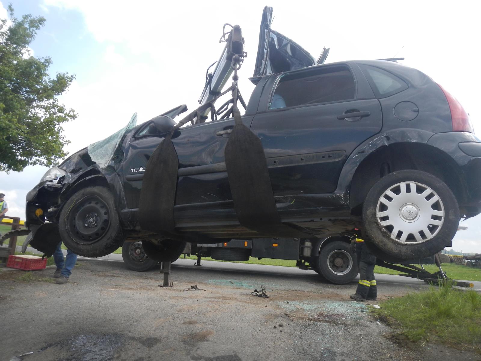 K nehodě, která byla ohlášena s nutností vyproštění zraněných osob, vyjeli profesionální hasiči ze stanice Milevsko, vyslána byla také ZZS a Policie ČR. Jednalo se o srážku osobních automobilů továrních značek Citroen C3 a Opel Astra. V Citroenu zůstaly zaklíněny dvě osoby. Hasiči museli hydraulickým vyprošťovacím zařízením dostřihnout celou střechu. Zraněného řidiče vyprostili a během několika minut předali zdravotníkům. Do nemocnice byl transportován letecky. Jeho zraněnou spolujezdkyni po vyproštění ZZS do nemocnice převezla sanitkou. Řidička vozu Opel vyvázla bez zranění.
