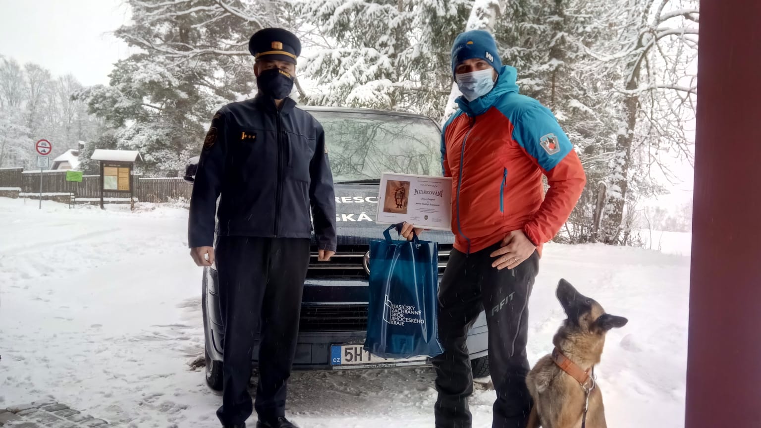 Velkého poděkování se dostalo záchranářské fence belgického ovčáka Enigmě a jejímu psovodu – členovi Horské služby Šumava Ondřeji Zemanovi, když byl oceněn jejich zásah při pátrání po pohřešované osobě.