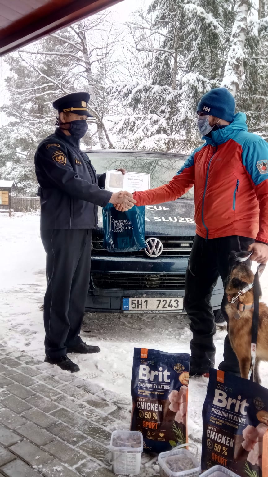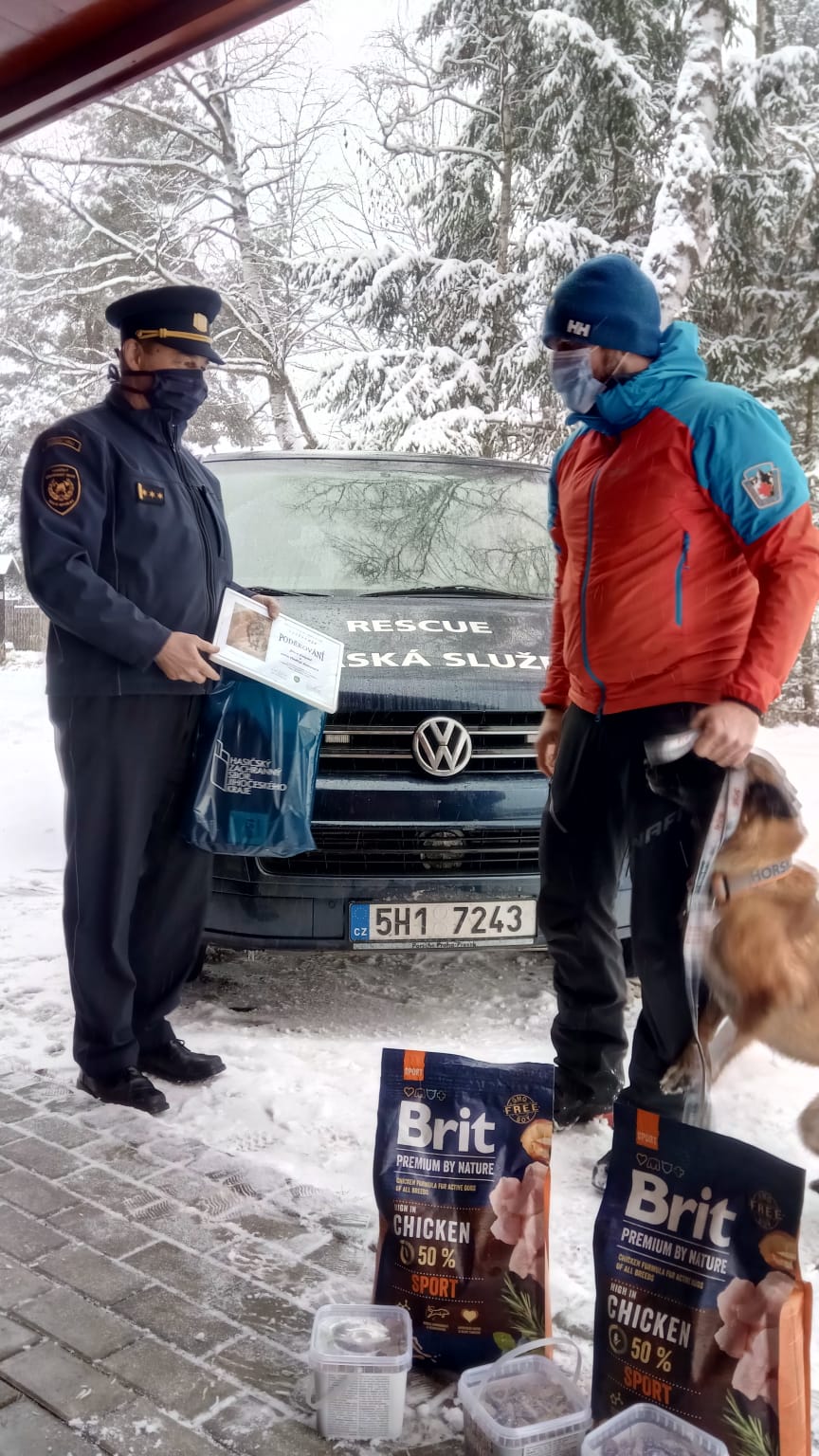 Ondřej Zeman obdržel písemné poděkování a drobné dárky, fenka Enigma dostala odměnu ve formě psích pochoutek.