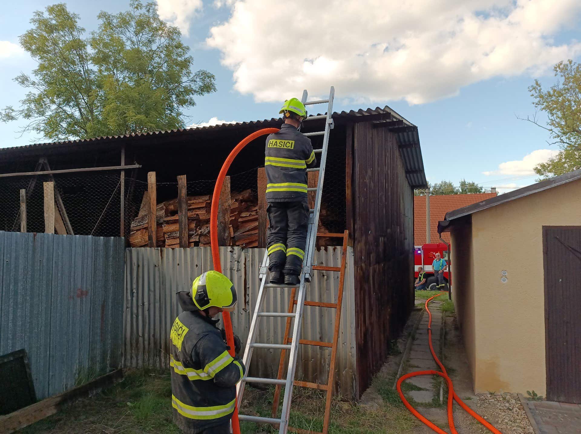 Hasiči likvidovali požár střechy garáže, uvnitř byly balíky sena