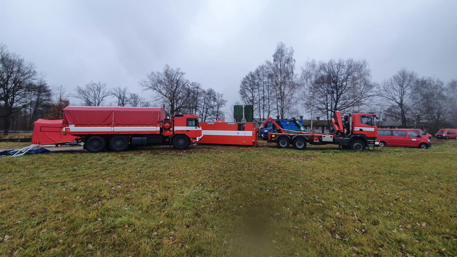 Veškerá vyslaná hasičská technika se k Byňovskému rybníku dostavila již v ranních hodinách. Hasiči zde připravili dekontaminační stanoviště a týlové zabezpečení, které se stávalo z velitelského kontejneru a stanů na převlečení zasahujících hasičů.