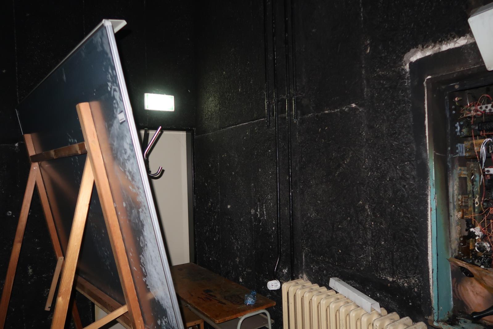 V podzemním prostorách hasiči prozkoumali kinosál a za ním v technické místnosti hořel rozvaděč. Plamenné hoření hasiči rychle uhasili. Na průzkum skrytých možných ohnisek hasiči použili termokameru.