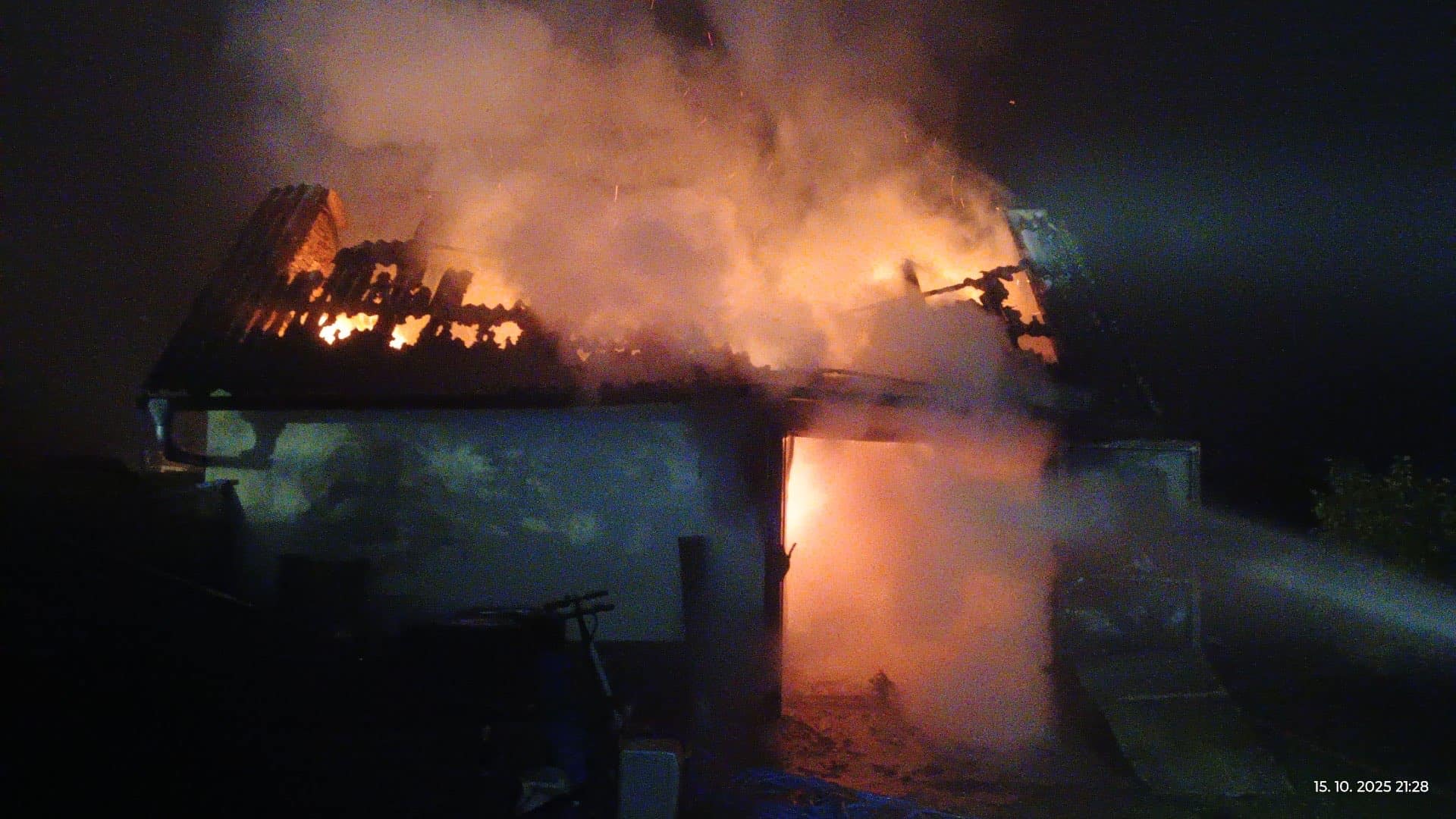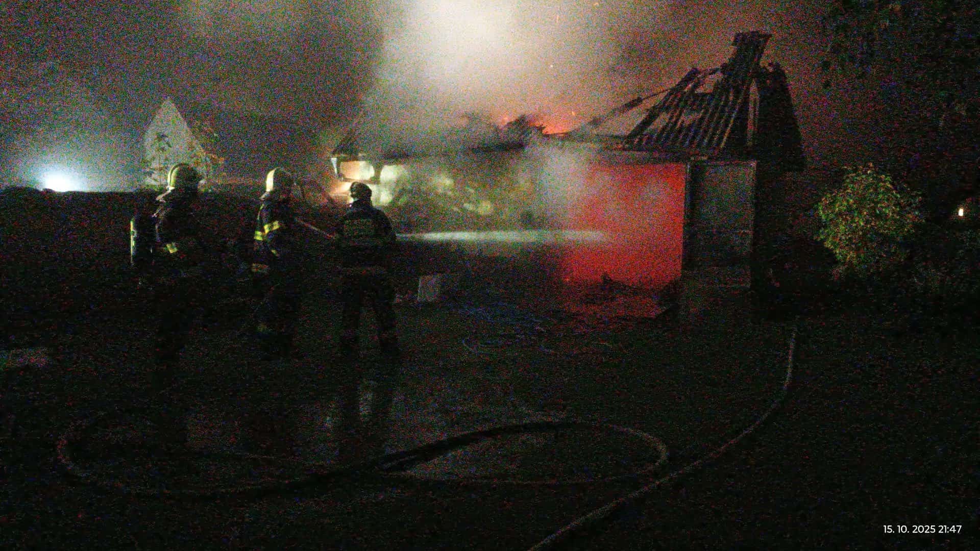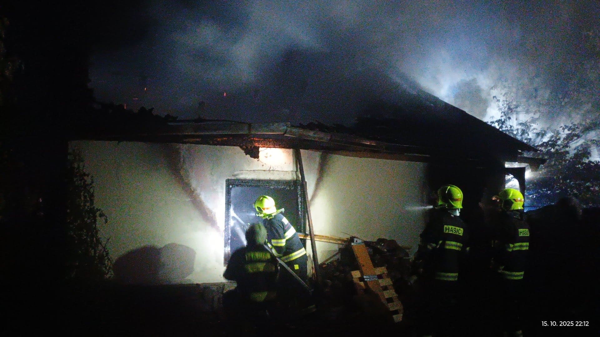 Hasiči zasahovali u nočního požáru kůlny, zabránili výbuchu