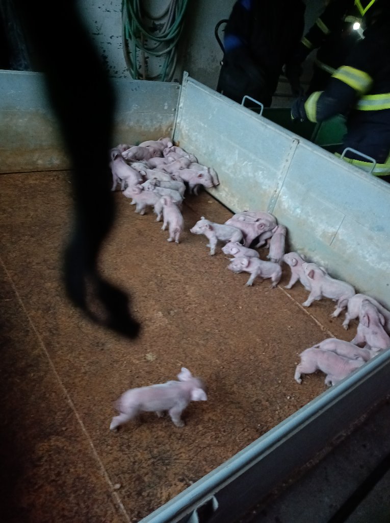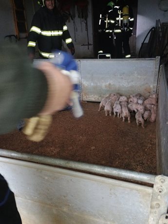 Během zásahu byla evakuována část prasat a selat do odvětrané haly, aby byla zajištěna jejich bezpečnost a minimalizováno riziko udušení kouřem. Zásah probíhal podle standardních bezpečnostních postupů pro zasahující i zvířata.