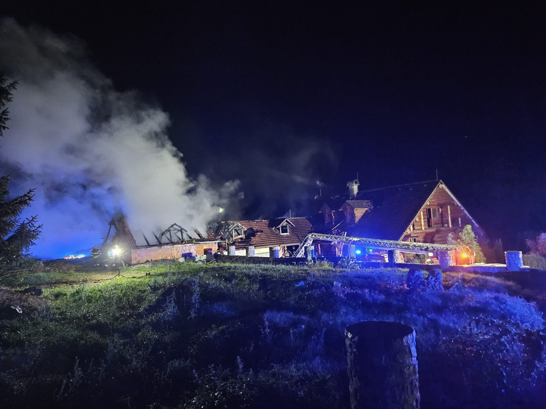 Krátce před půl devátou večer 5. září přijalo operační středisko hlášení o požáru dřevěného srubu v Dobechově u Kaplice. Po příjezdu prvních jednotek byl objekt zasažen plameny v plném rozsahu. Velitel zásahu proto vyhlásil druhý stupeň poplachu. Na místo vyjely profesionální jednotky ze stanic Český Krumlov, Kaplice a Trhové Sviny. K nim se připojily i dobrovolné sbory z Vyššího Brodu, Velešína, Benešova nad Černou, Malont a Kaplice–Hubenova.