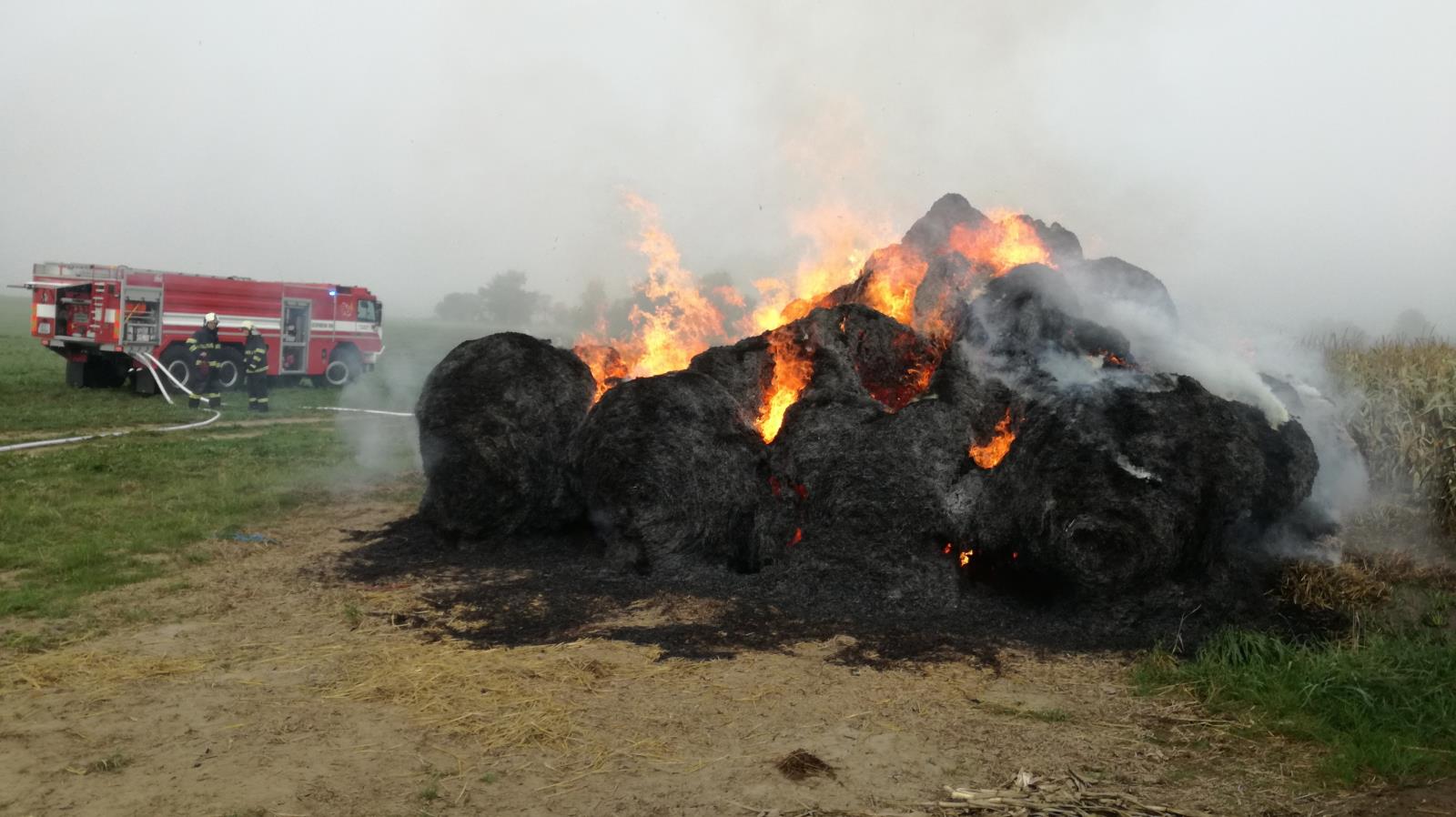 Hořící stoh u Dolního Třebonína nechali hasiči kontrolovaně vyhořet