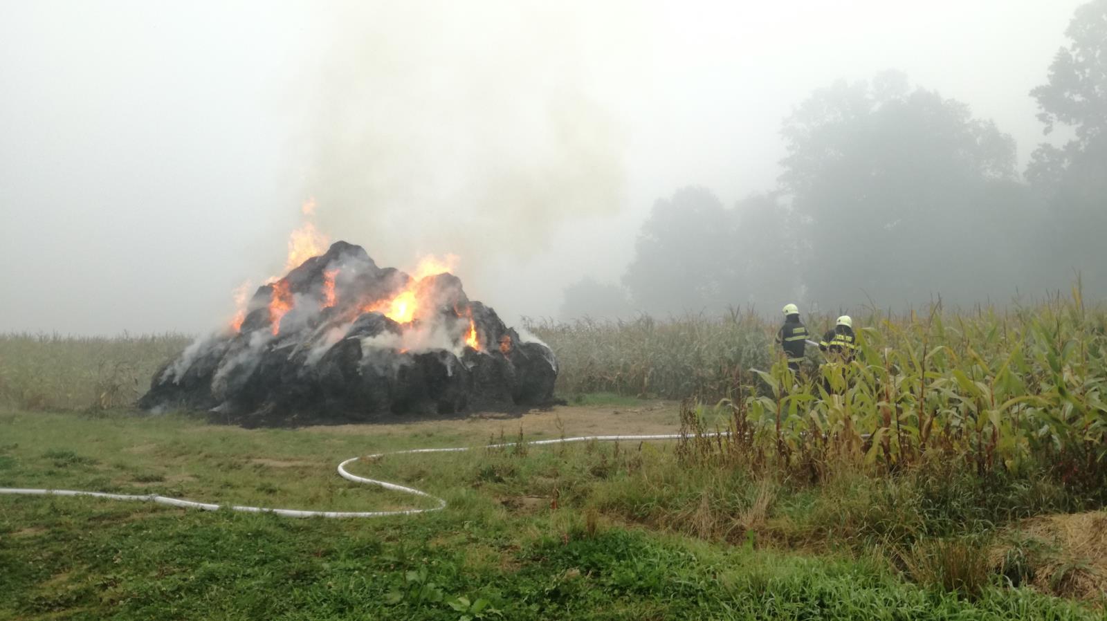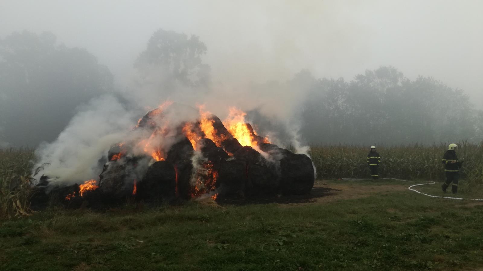 Když hasiči přijeli k požáru, hořel stoh kompletně. Bylo zasaženo všech 60 naskládaných balíků. Jednotky prověřily, že požár se nemůže dále šířit, že neohrožuje nic dalšího v okolí a společně s majitelem se dohodly, že stoh bude ponechán ke kontrolovanému vyhoření. Ještě před polednem z požářiště odjely českokrumlovská a velešínská jednotka, místní dobrovolní hasiči hořící stoh kontrolovali až do odpoledních hodin. Škoda na shořelých balících činí 15 000,-. Příčina vzniku požáru je v šetření.