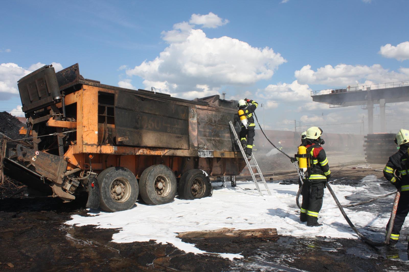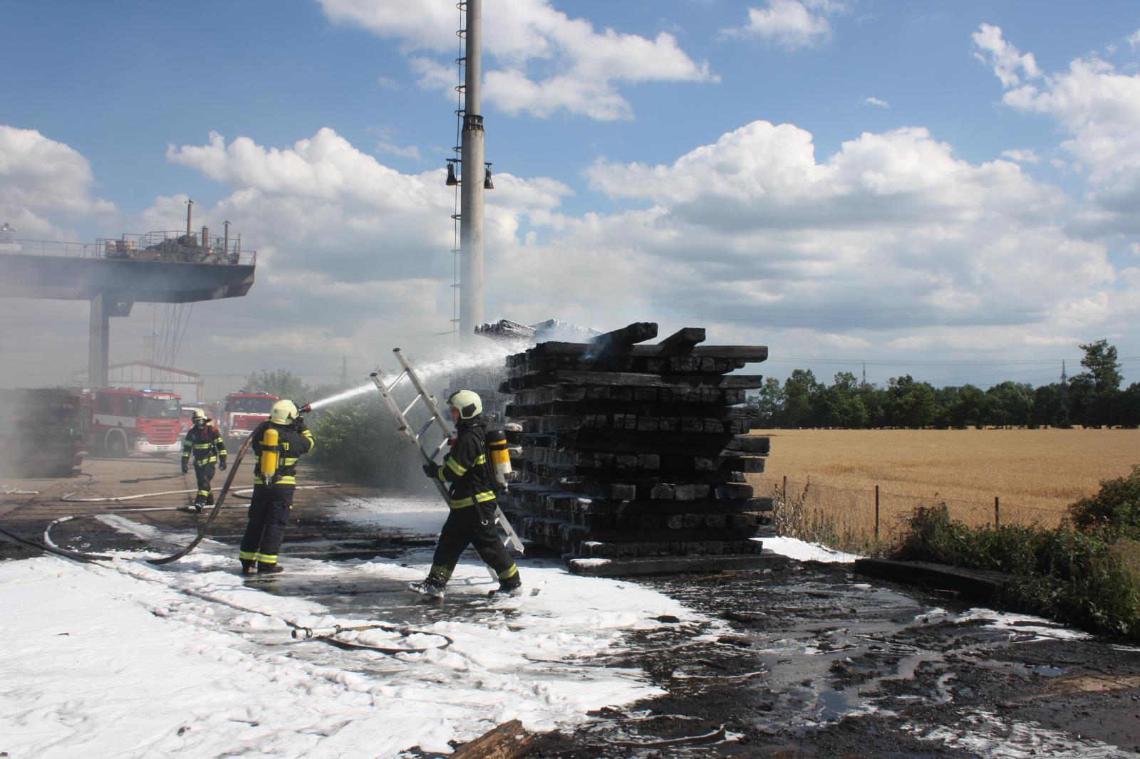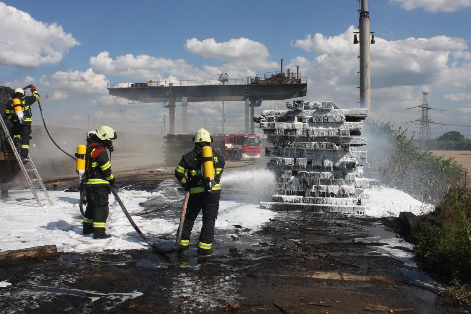 Z hořícího stroje a pražců šel silný kouř, hasiči proto zasahovali v kompletní dýchací technické. Hasiči zároveň s hašením ochlazovali bezprostřední okolí, aby zabránili rozšíření požáru na blízké pole se vzrostlým obilím.