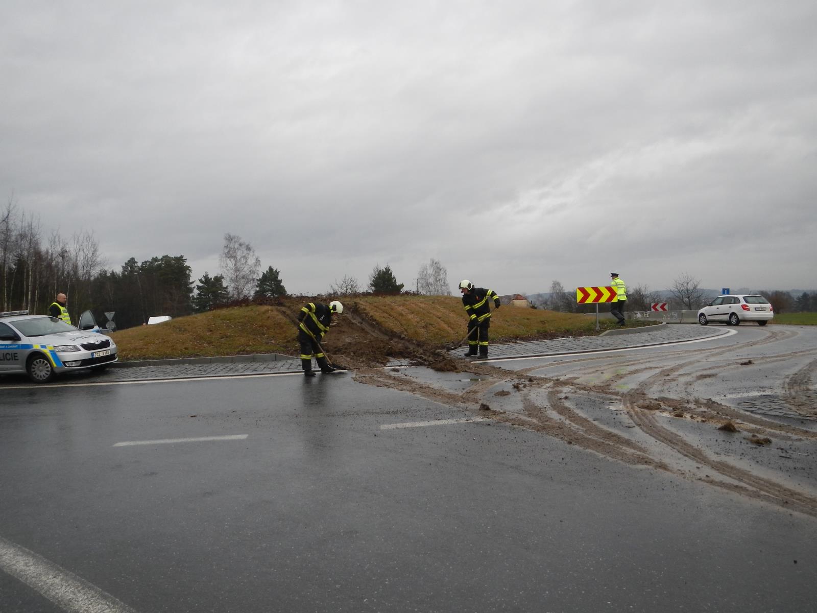 Policie ČR celý kruhový objezd uzavřela. Hasiči pak použili textilní úvazy, kterými tahač i s návěsem stáhli z trávy zpět na silnici. Auto pak poodjelo na odpočivadlo. Hasiči na závěr uklidili silnici nečištěnou od nanesené zeminy a bláta. Nehodu šetřila Policie ČR.