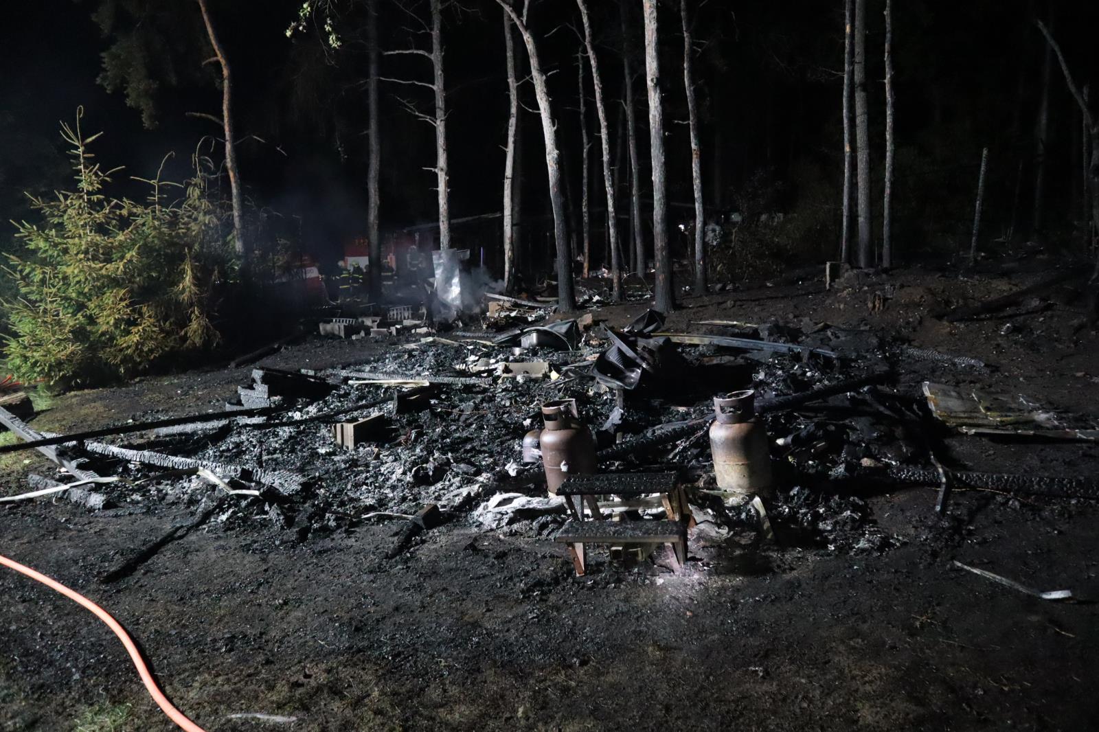 Jedenáct shořelých karavanů v kempu Radava