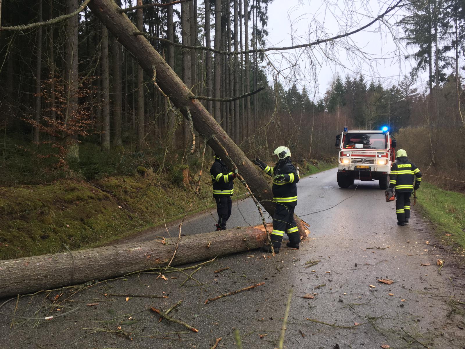 Operační a informační středisko HZS Jihočeského kraje přijalo první tísňové voláni o spadlém stromu v 4:42 hodin, a to z Prachaticka. Následovaly další desítky volání. V tuto chvíli (10 hodin) evidujeme necelých sedm destítek tzv. vícečetných událostí. Znamená to, že hasiči během jednoho výjezdu odklízeli i více popadaných stromů.