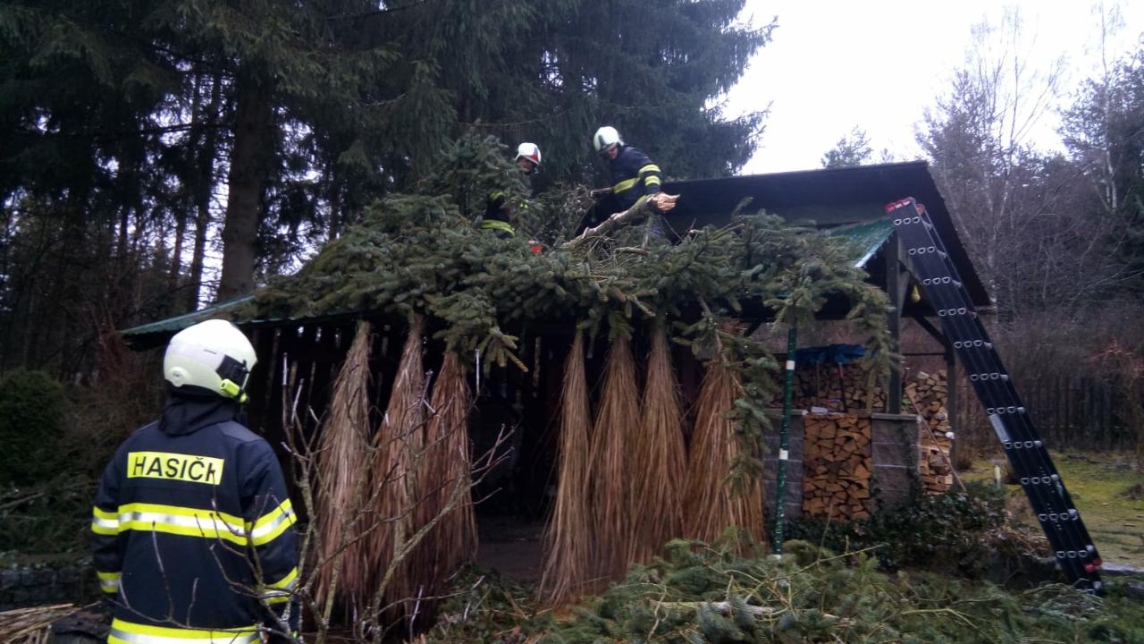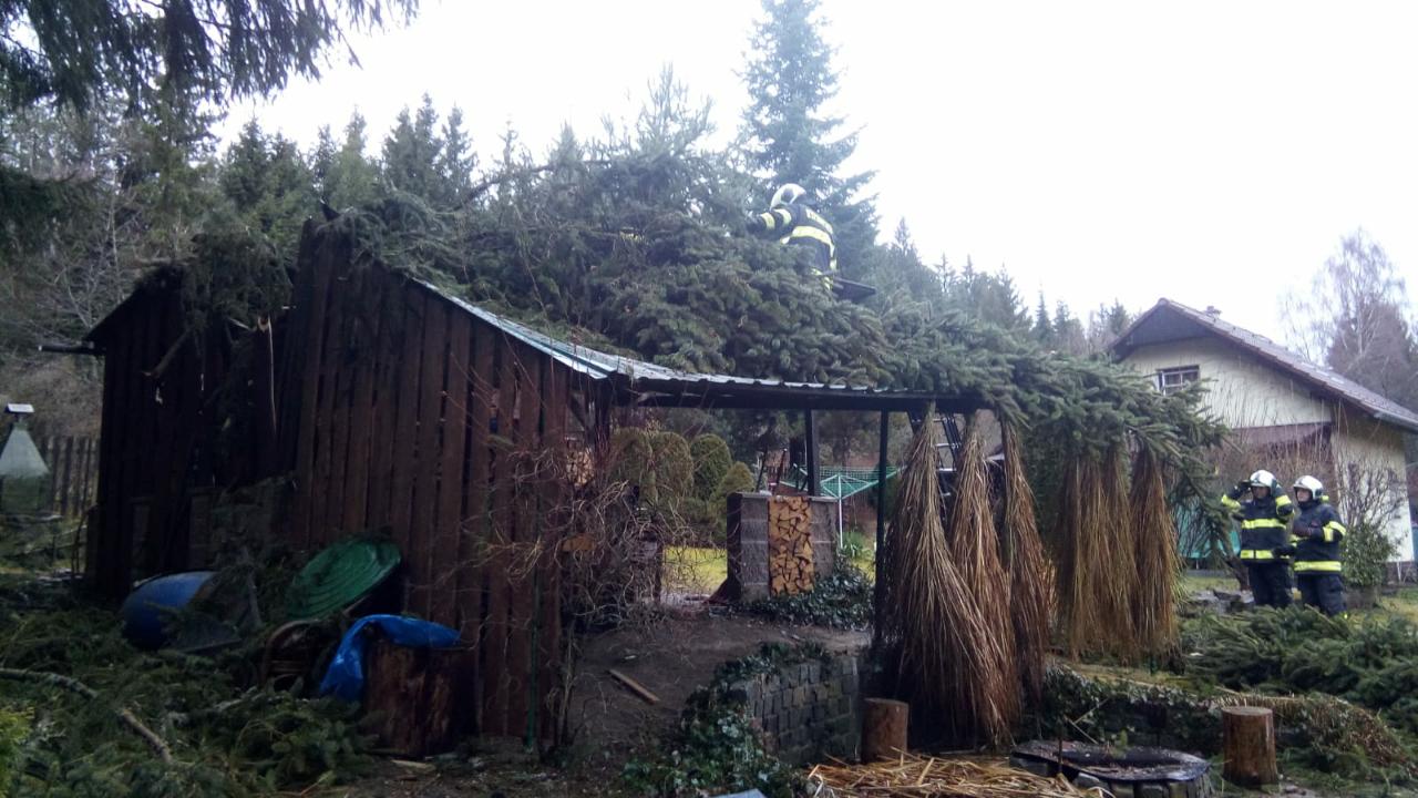 Přibližně od páté hodiny ranní vyjízdějí jihočeští profesionální a dobrovolní hasiči k zásahům, při kterých odstraňují následky silného větru.