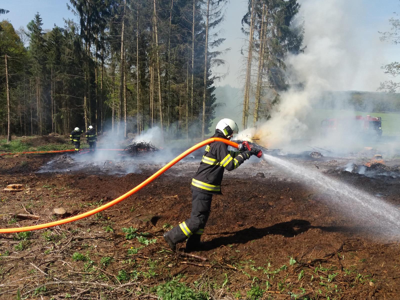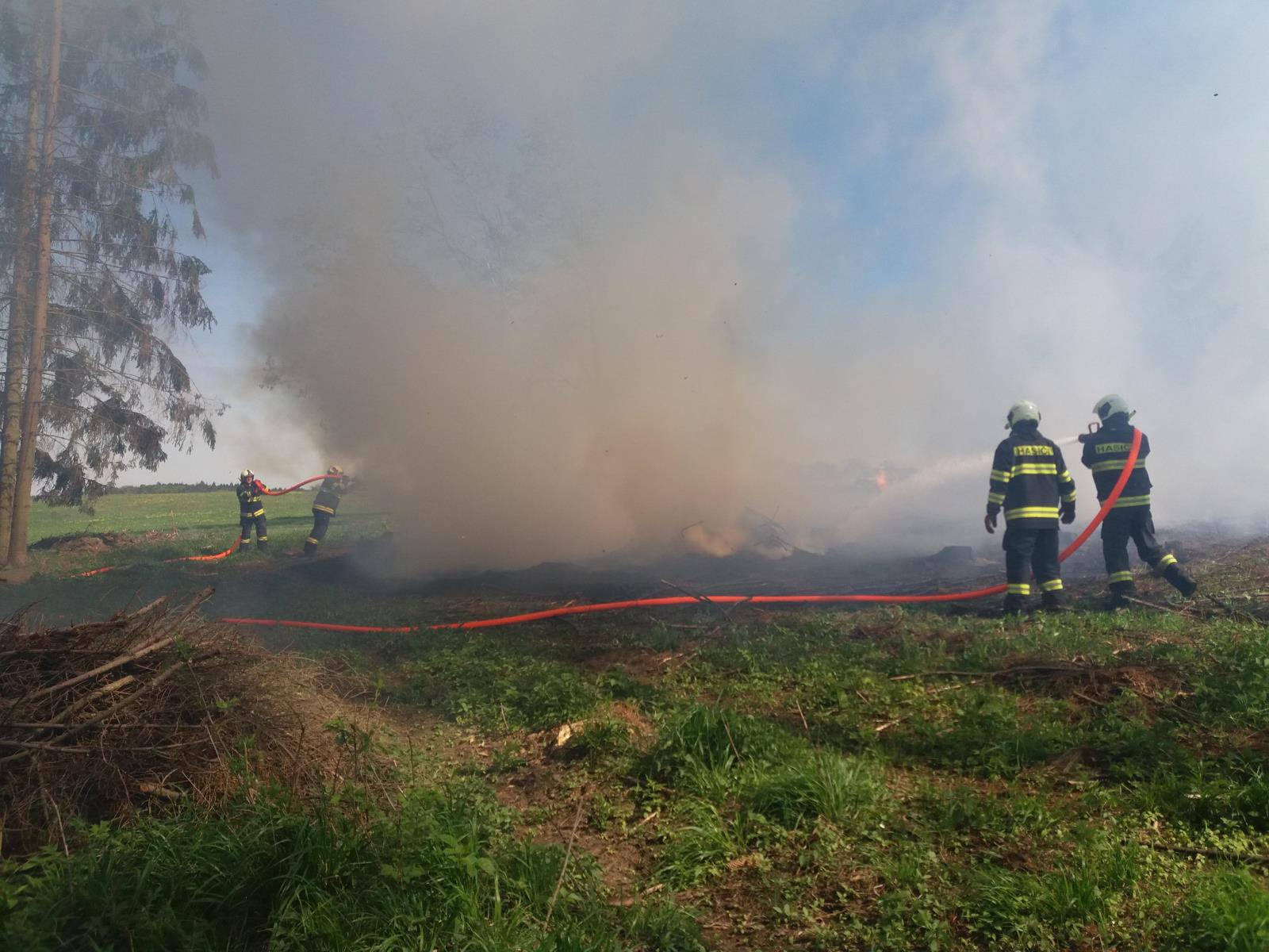 Dolním Třeboníně společně s jednotkou místních dobrovolných hasičů likvidovali požár vatry připravené na dnešní pondělní pálení čarodějnic. Hasiči vatru uhasili a požářiště prolili vodou. Požár je beze škody.