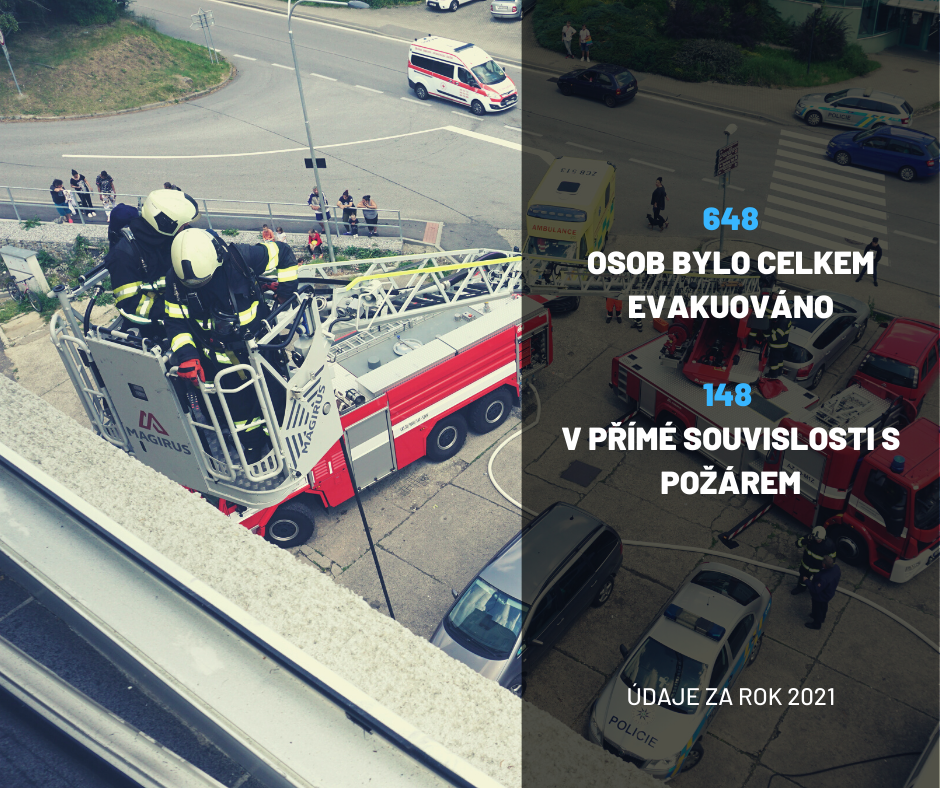 - hasiči u všech typů zásahů evakuovali 641 osob, z toho 148 v přímé souvislosti s požárem,