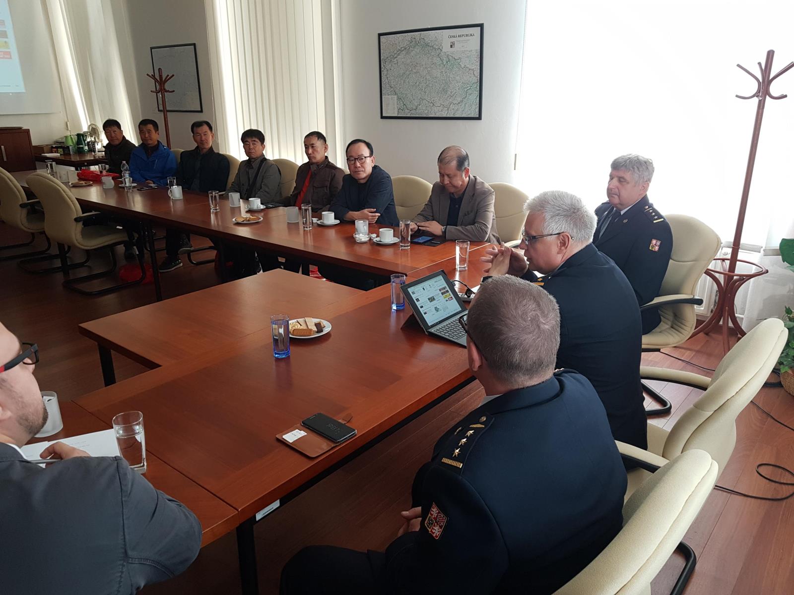 Po výměně dárků obou zemí se skupina přesunula na operační středisko, kde jí bylo předvedeno operační řízení v praxi.